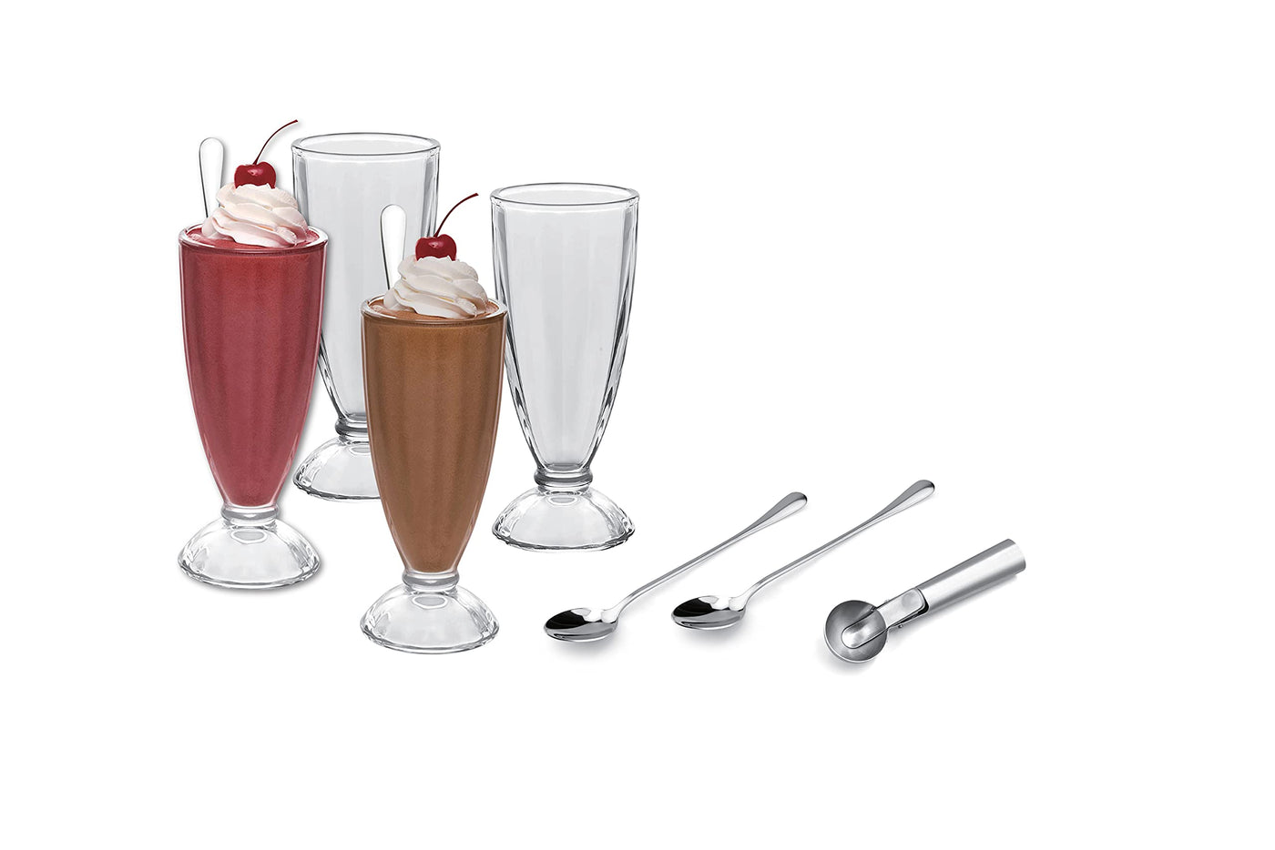 Le Regalo 9 Piece Ice Cream Serving Set - 4 Ice Cream Cups, 4 Ice Cream Spoons And 1 Scoop For Sundaes, Milkshakes, Ice Creams A