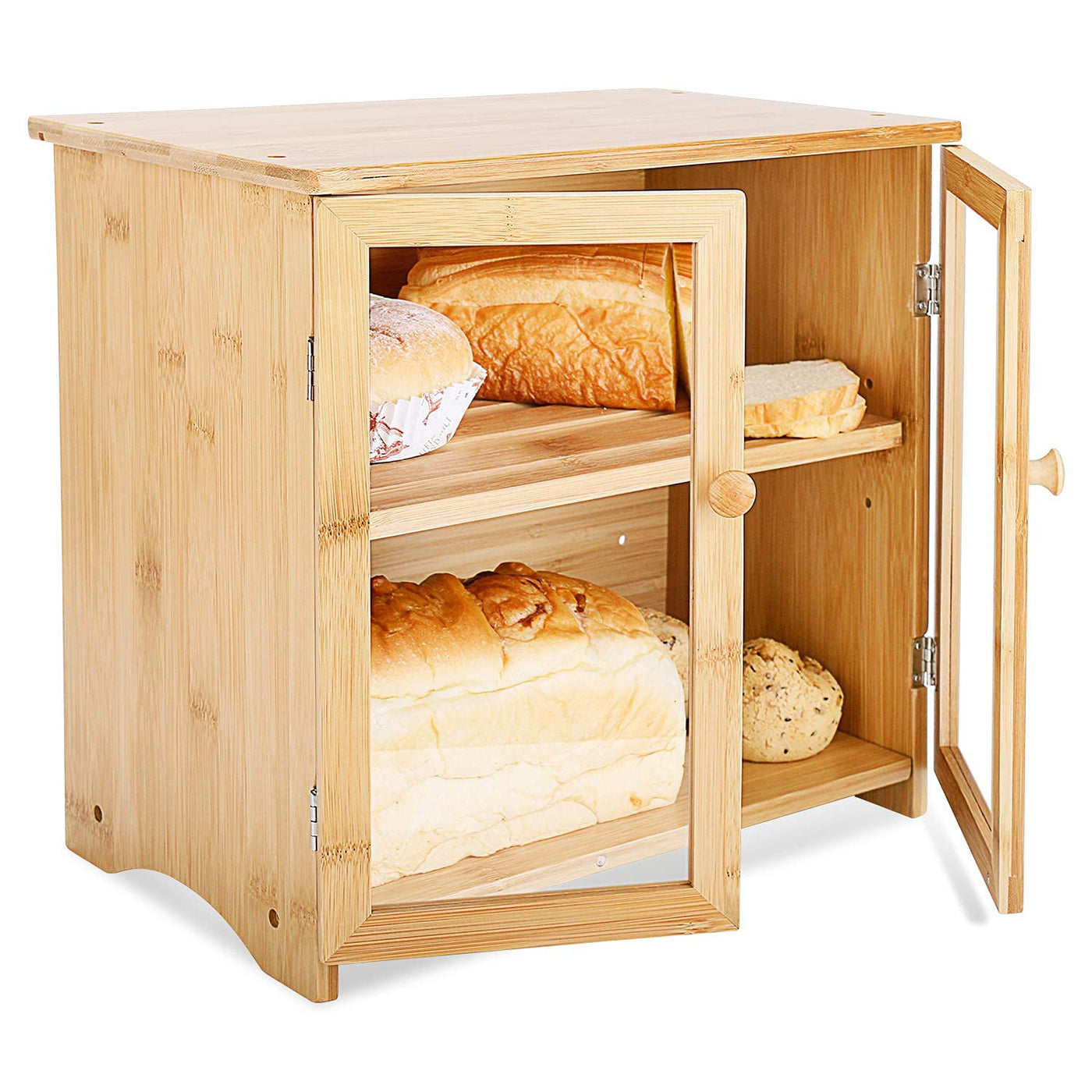 • Q: Can I see the contents of the bread box easily? A: Yes, the bread box has two doors with clear windows that allow easy visibility of the contents inside.