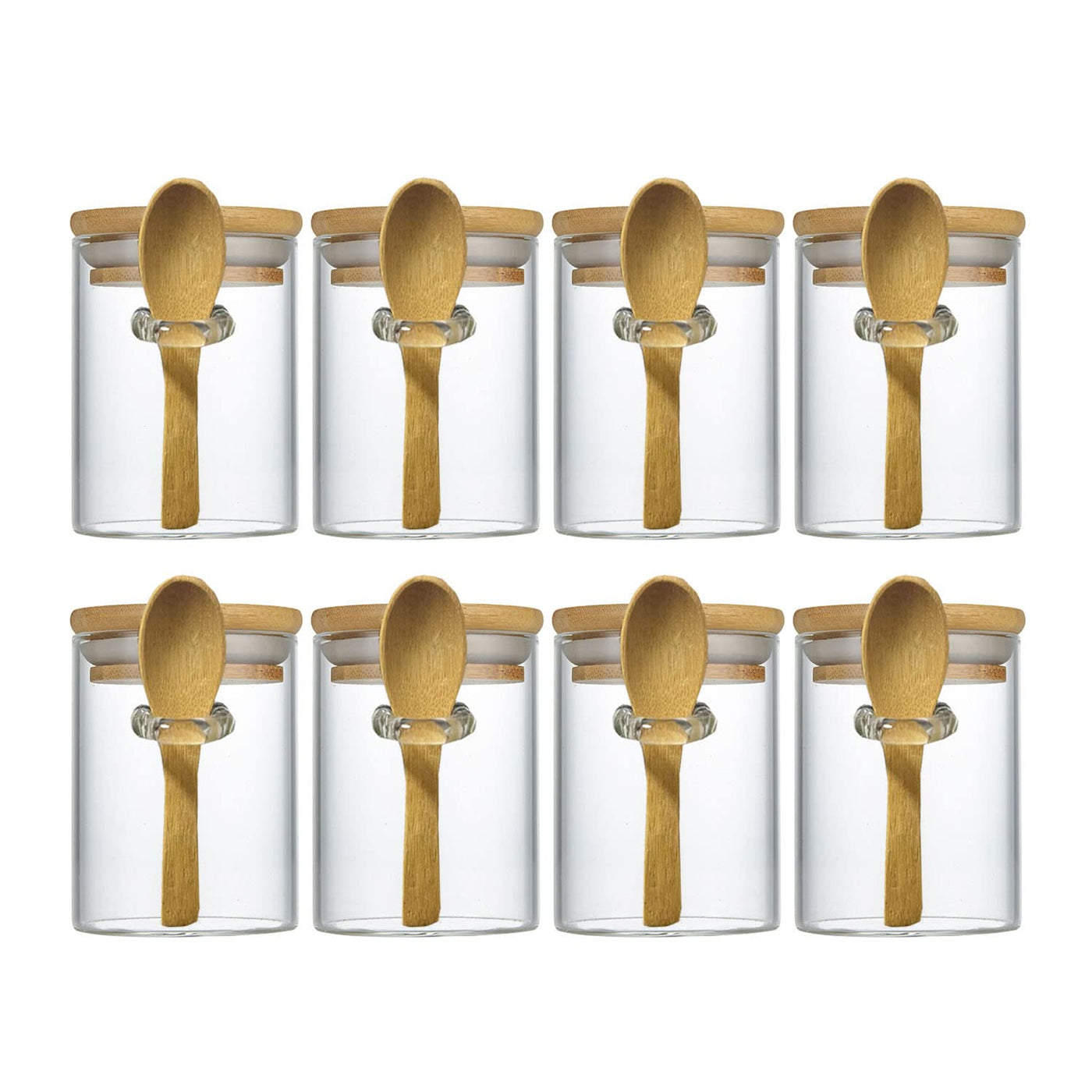 Livejun 8 oz Airtight Mini Glass Jars with Bamboo Lids and Bamboo Spoons Spice Jars Small Food Storage Containers for Kitchen Bathroom Home Decor Set of 8