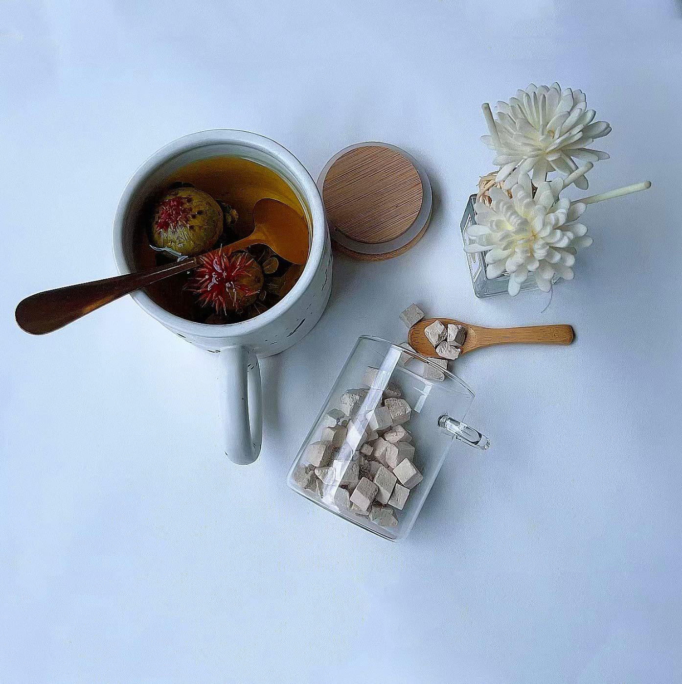 - Q: What materials are the jars made from? A: The jars are made from high borosilicate glass, while the lids and spoons are made from bamboo.