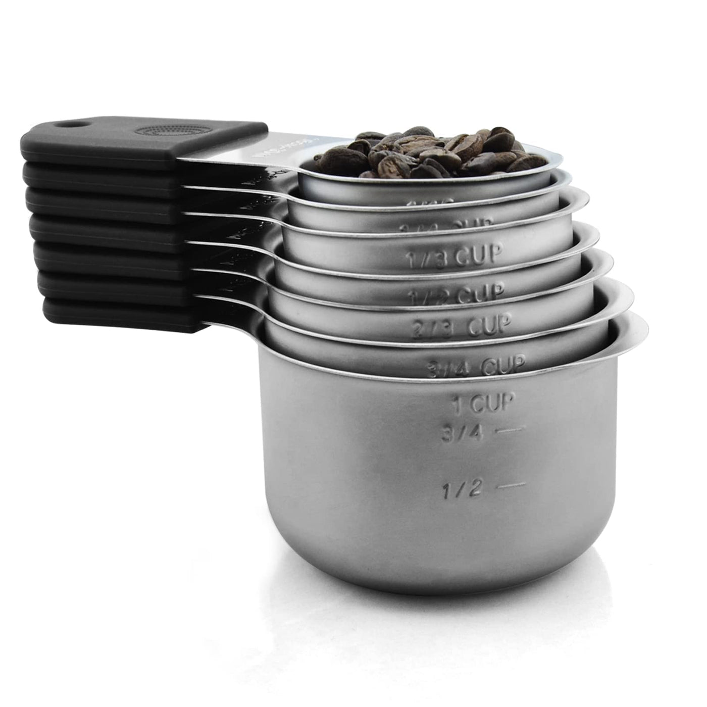 • Q: What material are the measuring cups made of? A: The measuring cups are made of premium food-grade stainless steel, which is rust-resistant and safe for both dry and liquid ingredients.