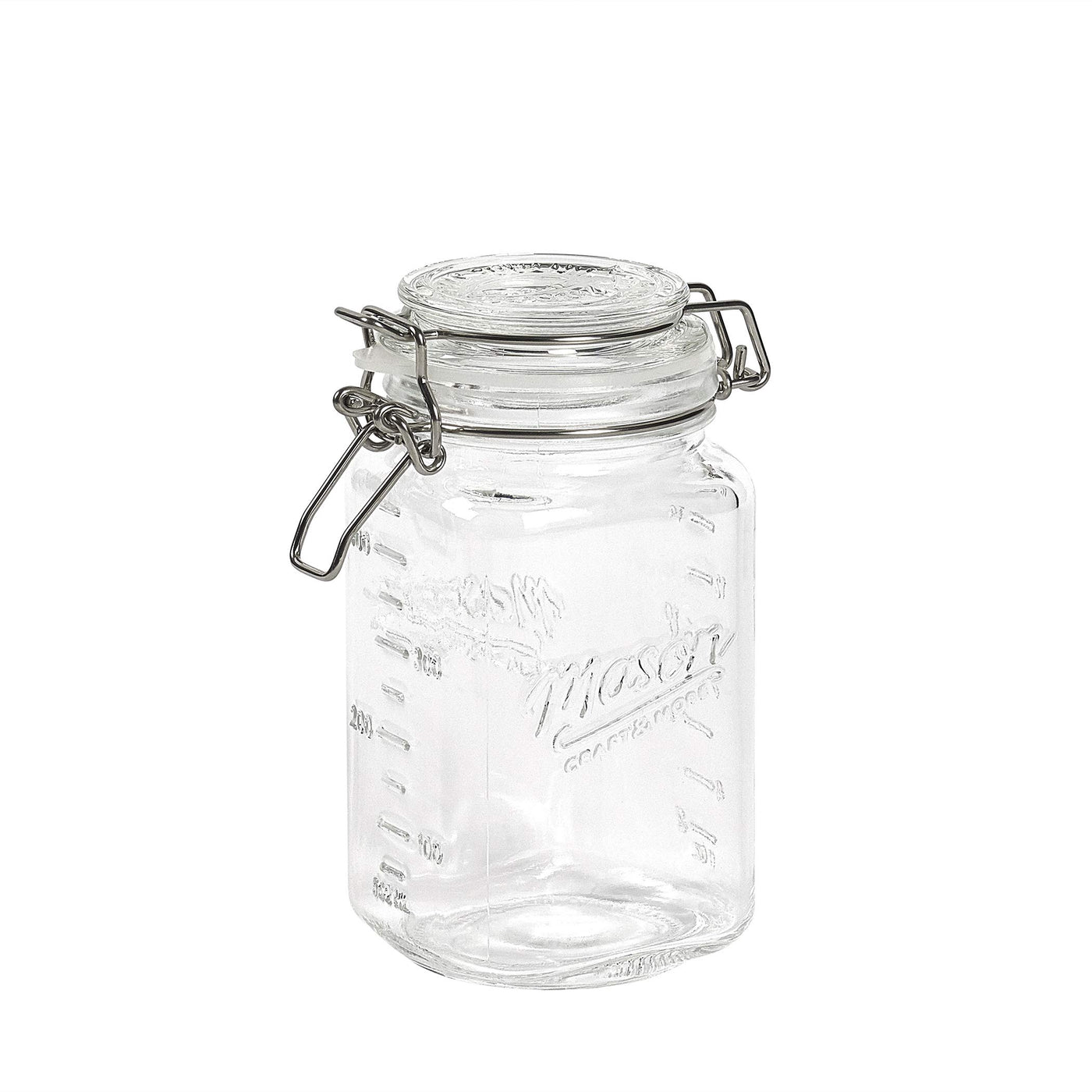 Mason Craft & More Airtight Kitchen Food Storage Clear Glass Clamp Jars, 50 Ounce (1.5 Liter) Medium Clamp Jar
