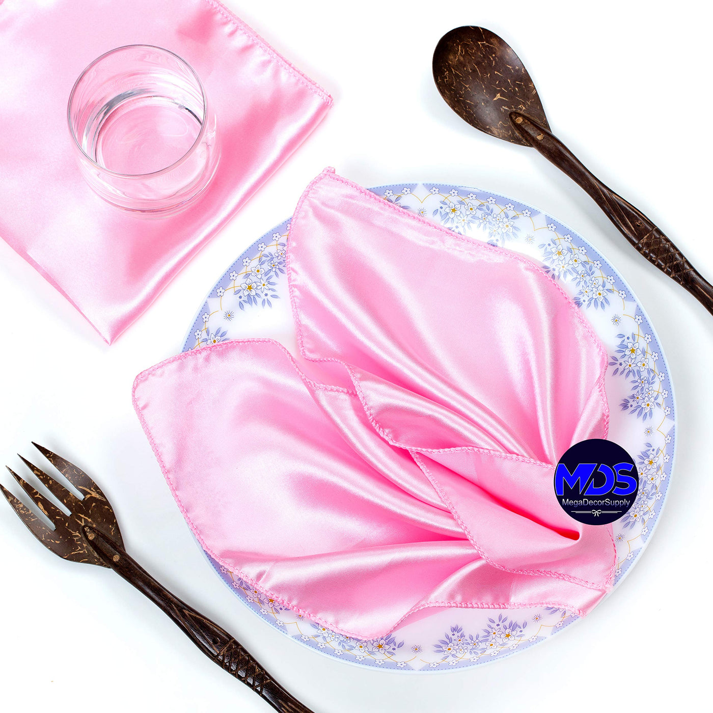 Mds Pack Of 50 Wedding Satin 12''X 12'' Square Dinner Napkin Or Handkerchief For Wedding Banquet Decoration - Pink