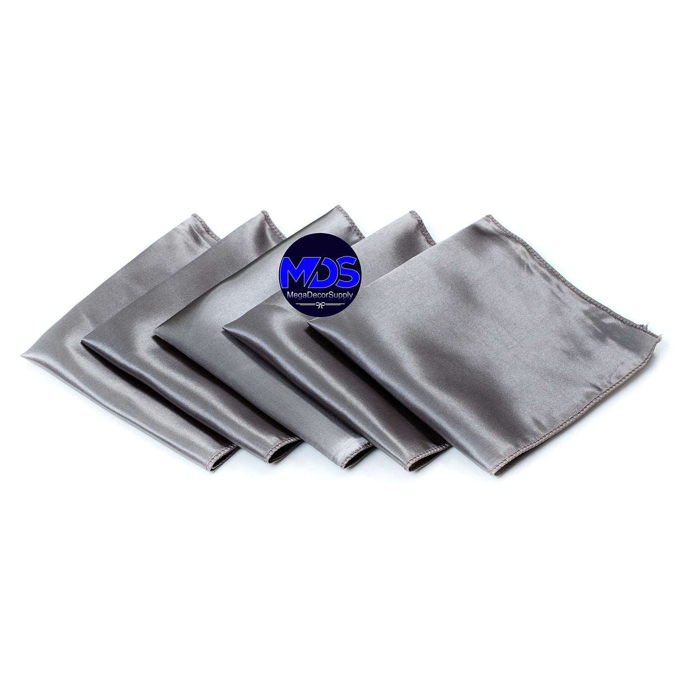 Mds Pack Of 50 Wedding Satin 12''X 12'' Square Dinner Napkin Or Handkerchief For Wedding Banquet Decoration - Silver Gray