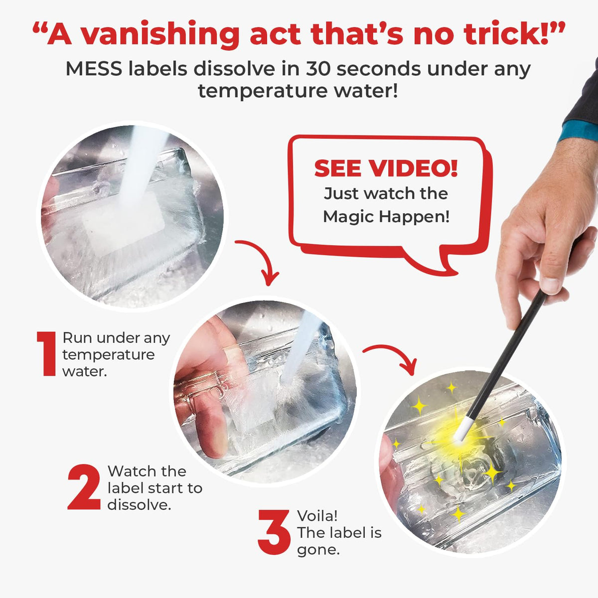 - Q: How do I use MESS Dissolvable Canning Labels? A: Simply write on the label with a pen or pencil, peel it off, and stick it onto your jar or container. To remove, just rinse it under water, and it will dissolve.