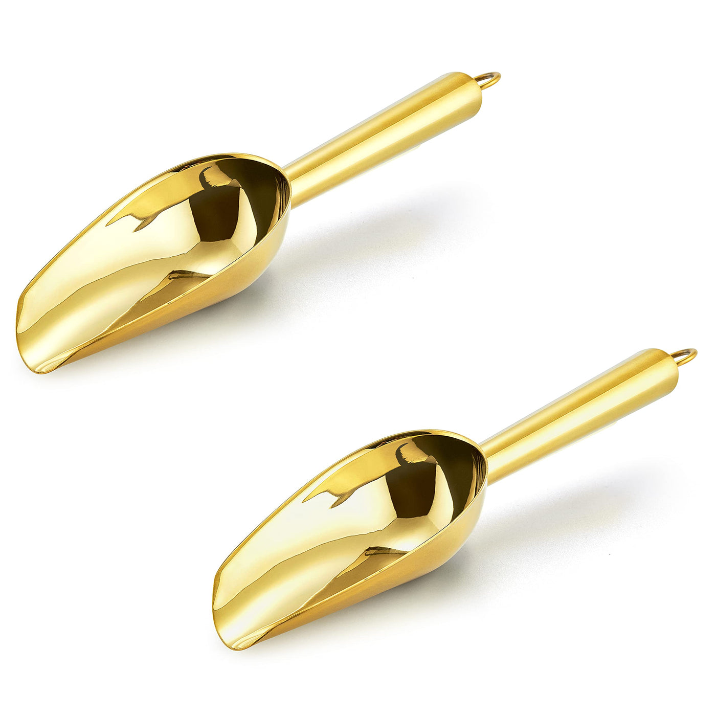 Mini Ice Scoop Set Of 2, E-Far 3 Ounce Gold Stainless Steel Scoops For Candy/Flour/Sugar, Small Metal Scoops For Party/Canisters