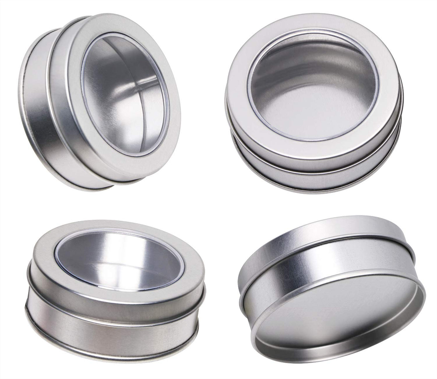 Mini Skater 2 Ounce Clear Top Window Metal Tin Cans High Grade Of Transparency Round Screw Lid Empty Box Containers For Candies,