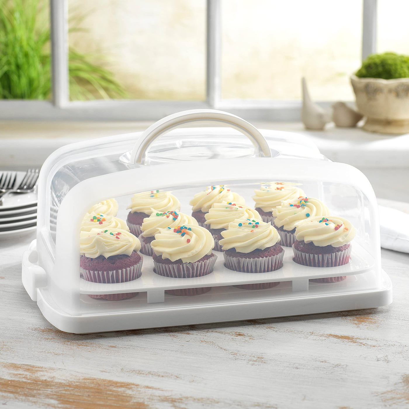 Mosjos 2In1 Cupcake Carrier And Cake Keeper With Lid, Cupcake Box To Fit 12, Sturdy, Bpa-Free Cupcake Holder With Two Secure Sid