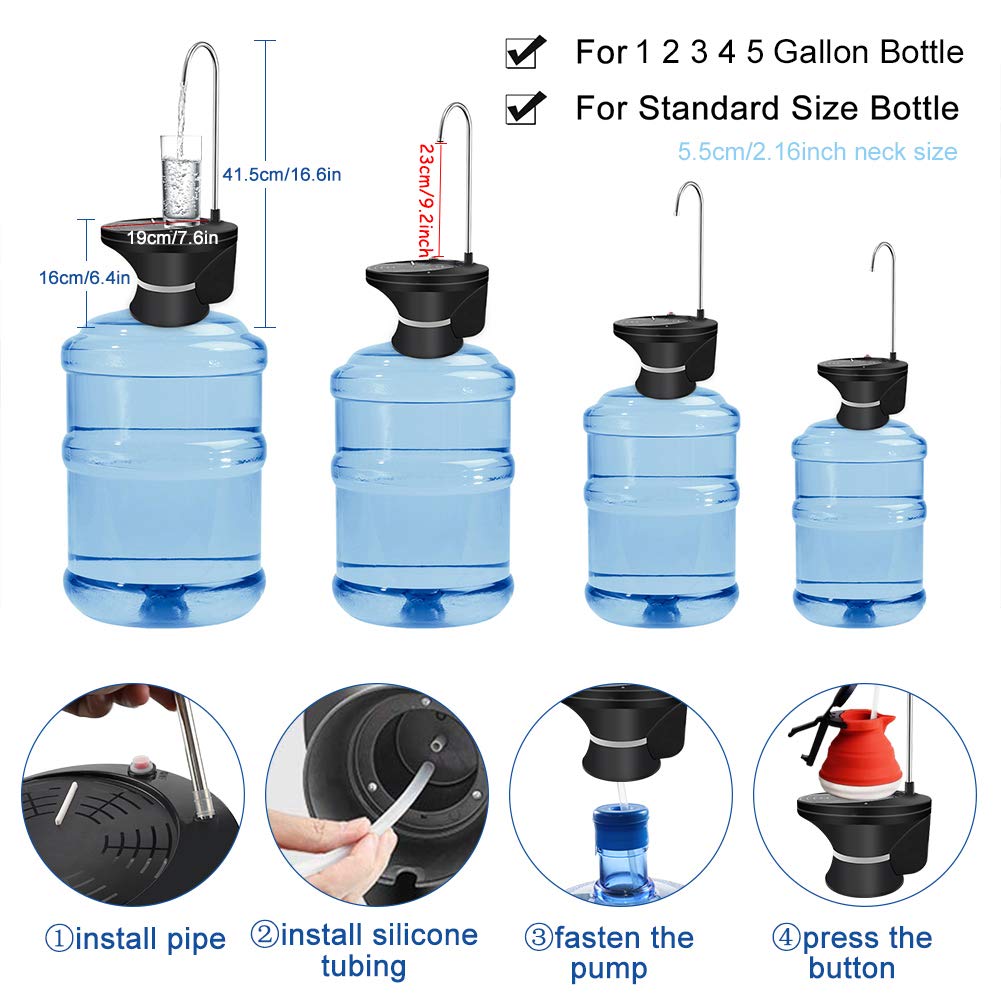 • Q: What is the capacity of this water dispenser? A: This water dispenser is compatible with 1 to 5-gallon water jugs, making it versatile for various needs.