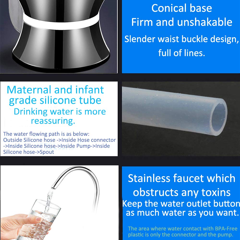 • Q: How do I operate the water dispenser? A: Simply insert and tighten the tube into the bottled water, then press the button to start dispensing. It has two user-friendly switches for easy operation.
