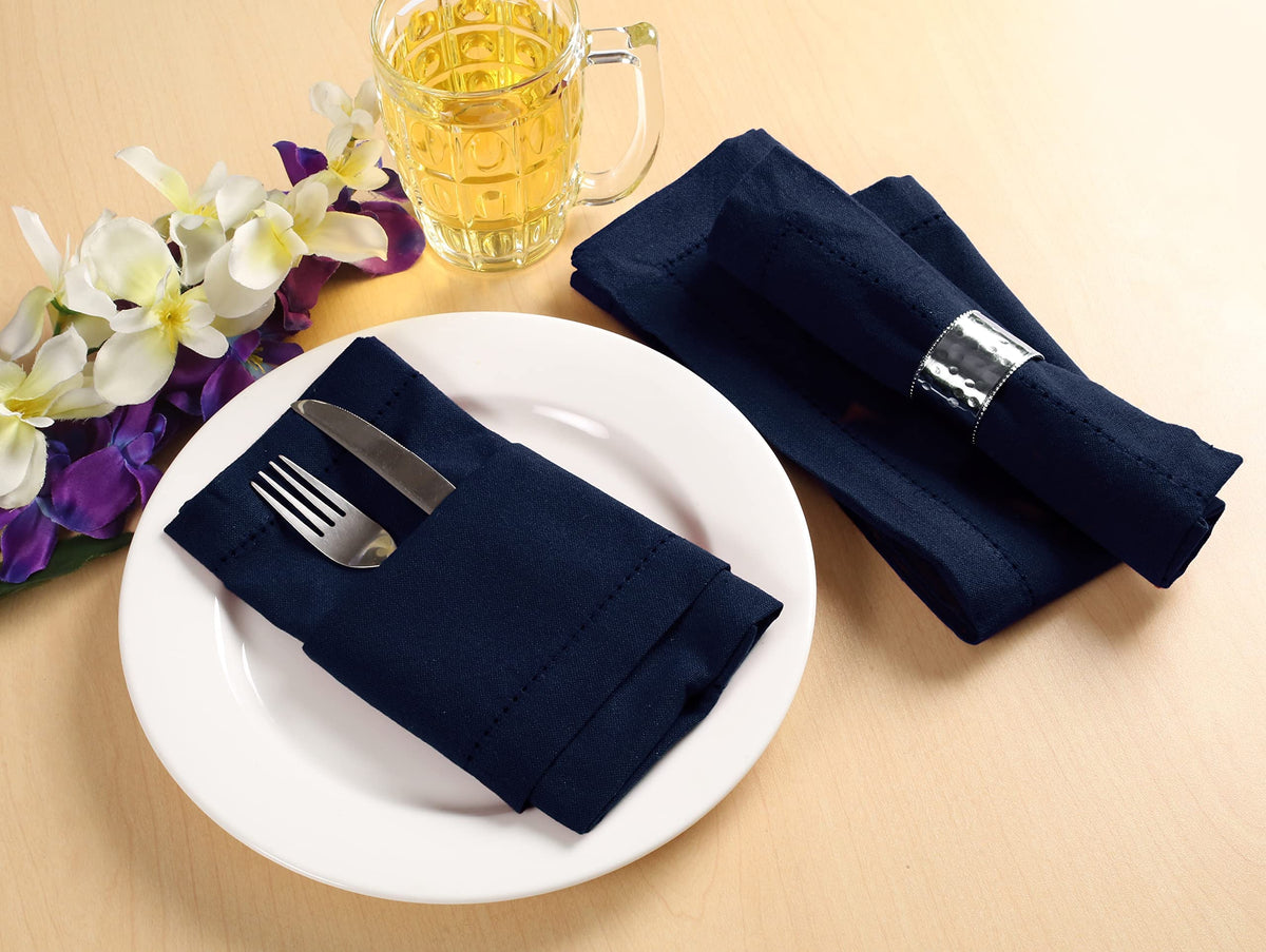 Palisa Cloth Dinner Napkins with Hemstitched Detailing & Mitered Corners Set of 12 (18x18 Inches) Navy - Cotton Reusable Dinner Napkins - Perfect for Weddings & Everyday Use