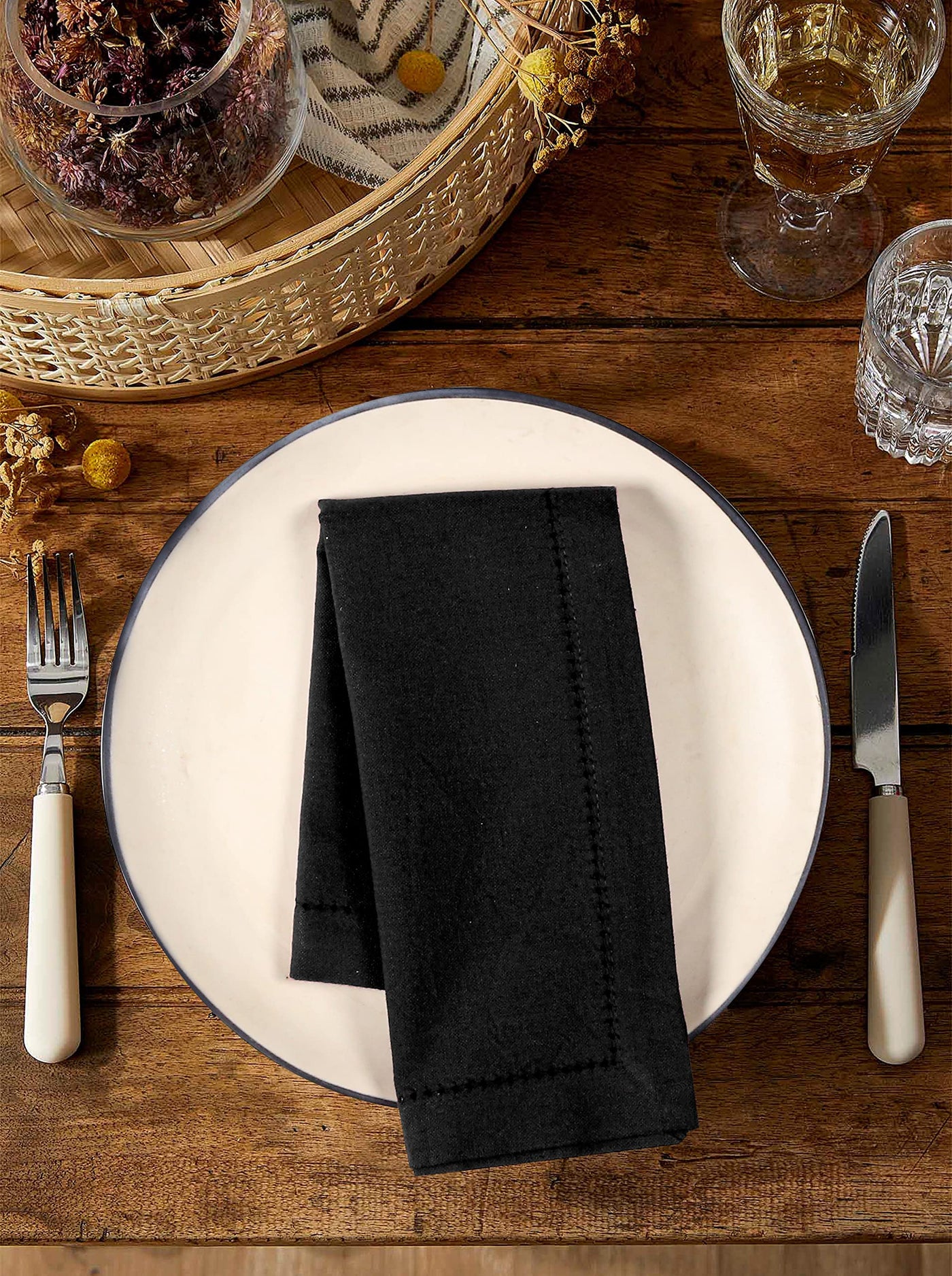 Palisa Cloth Dinner Napkins with Hemstitched Detailing & Mitered Corners Set of 4 (18x18 Inches) Black - Cotton Reusable Dinner Napkins - Perfect for Weddings & Everyday Use
