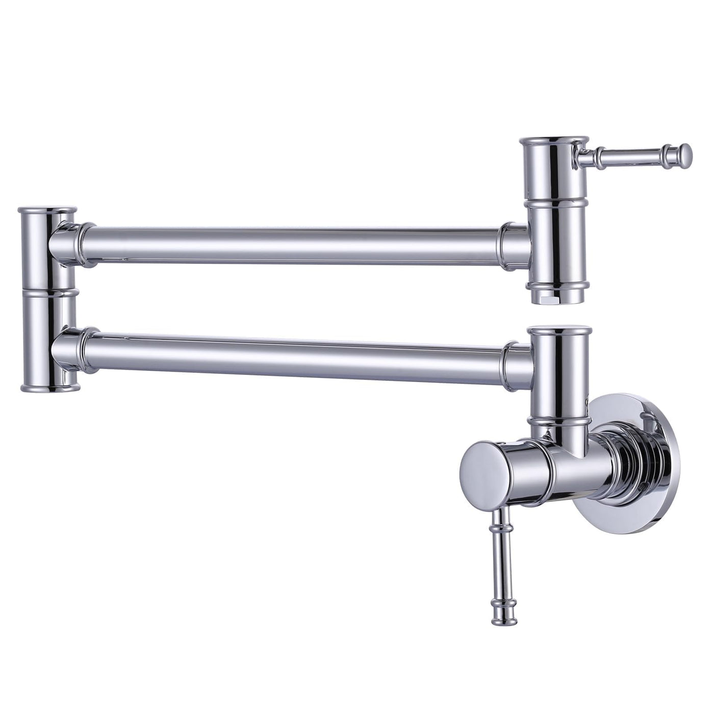 - Q: What is the maximum rotation angle for the pot filler faucet? A: The pot filler faucet features a 360-degree rotation, allowing you to swivel the arms for a maximum reach of 23.5 inches.