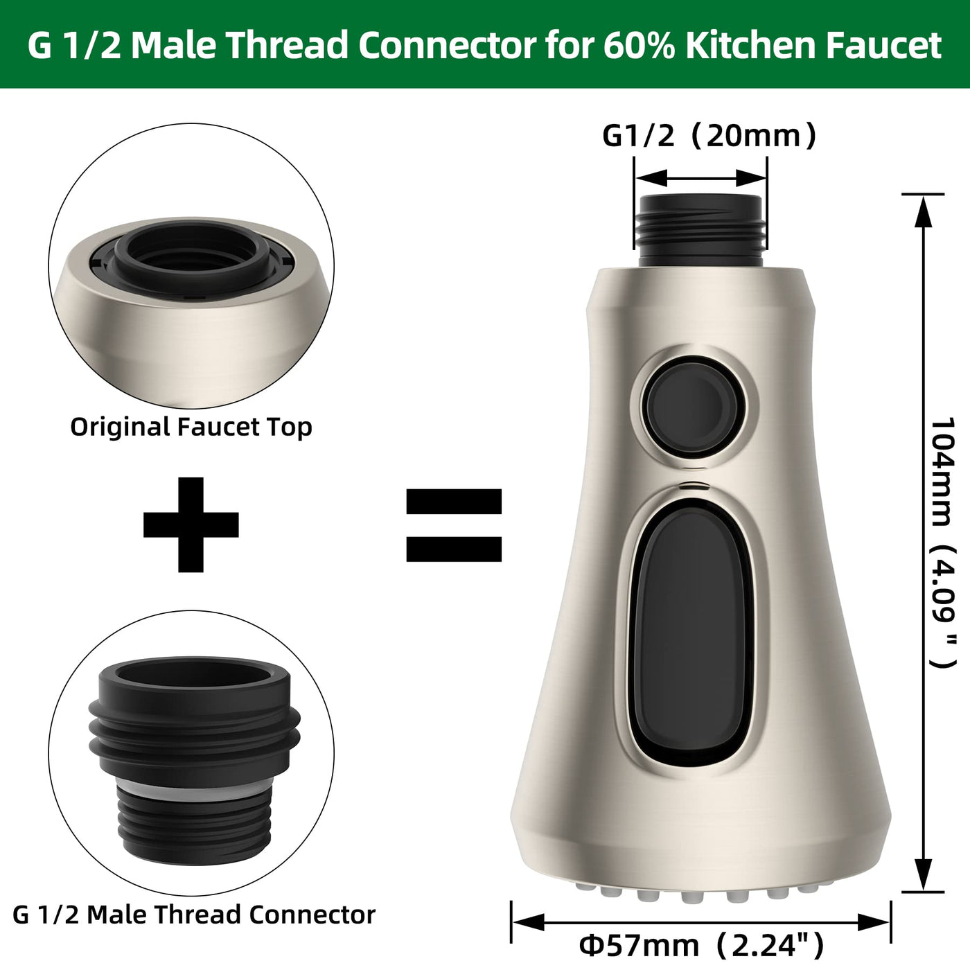 - Q: How do I install the Pull Down Kitchen Faucet Head Replacement? A: Installation is straightforward with the included adapter kit. Simply follow the provided instructions to attach the new head to your existing faucet.