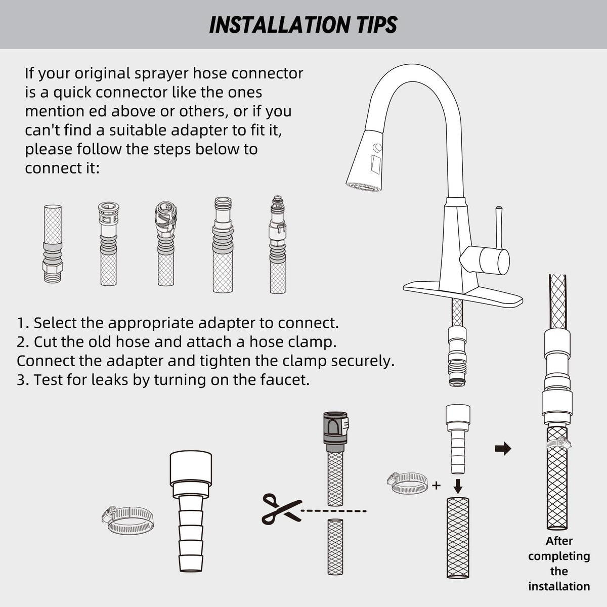 - Q: How do I install the faucet sprayer? A: Installation is straightforward. Choose the appropriate adapter for your faucet according to the included manual, making it accessible for everyone.