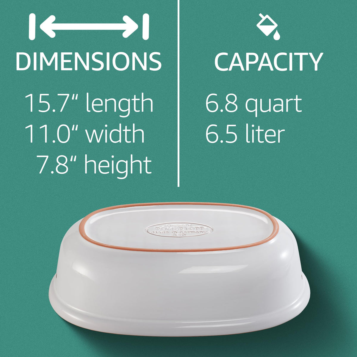 - Q: What is the size of the Romertopf Oval Ceramic Bread Freshness Pot? A: The Romertopf Oval Ceramic Bread Freshness Pot measures 15.7 inches long, 11 inches wide, and 7.8 inches high.