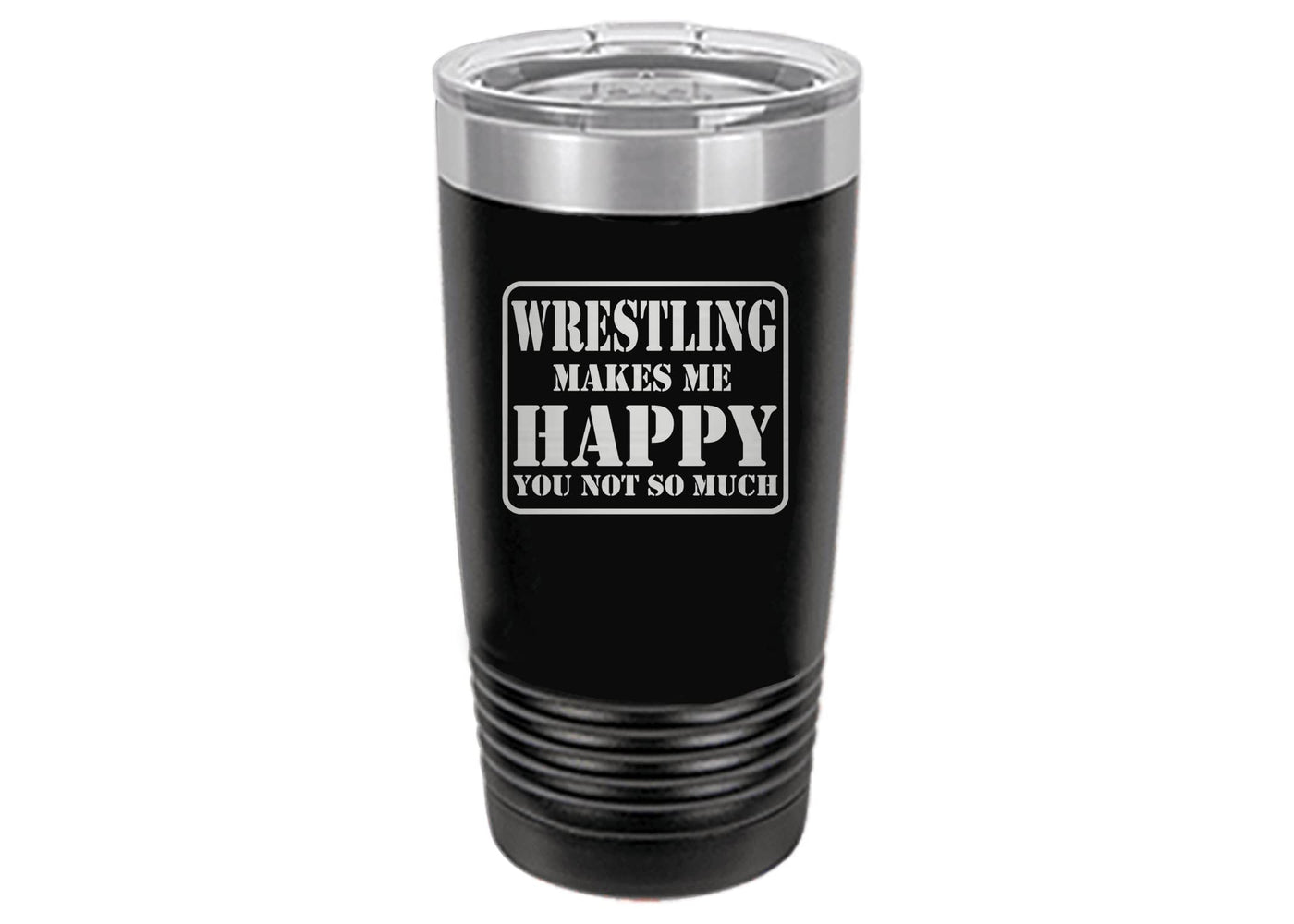 Rogue River Tactical Funny Black Wrestling 20 Oz. Travel Tumbler Mug Cup W/Lid Gift Idea Wrestling Makes Me Happy You Not So Muc