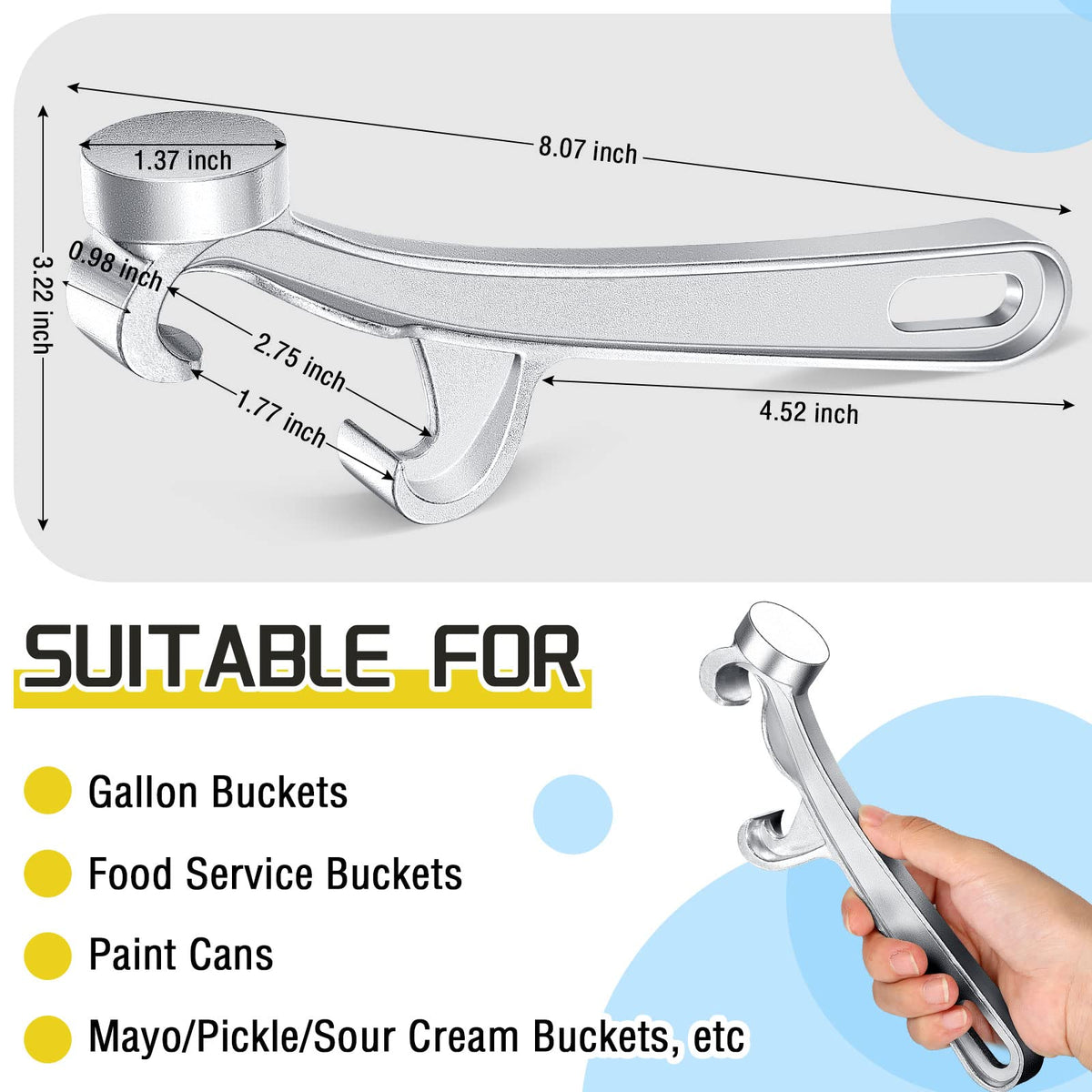 Romooa Aluminum Bucket Opener 5 Gallon Pail Opener Silver Buckets Lid Wrench Metal Can Opener Lid Remover Tool For Home Industri