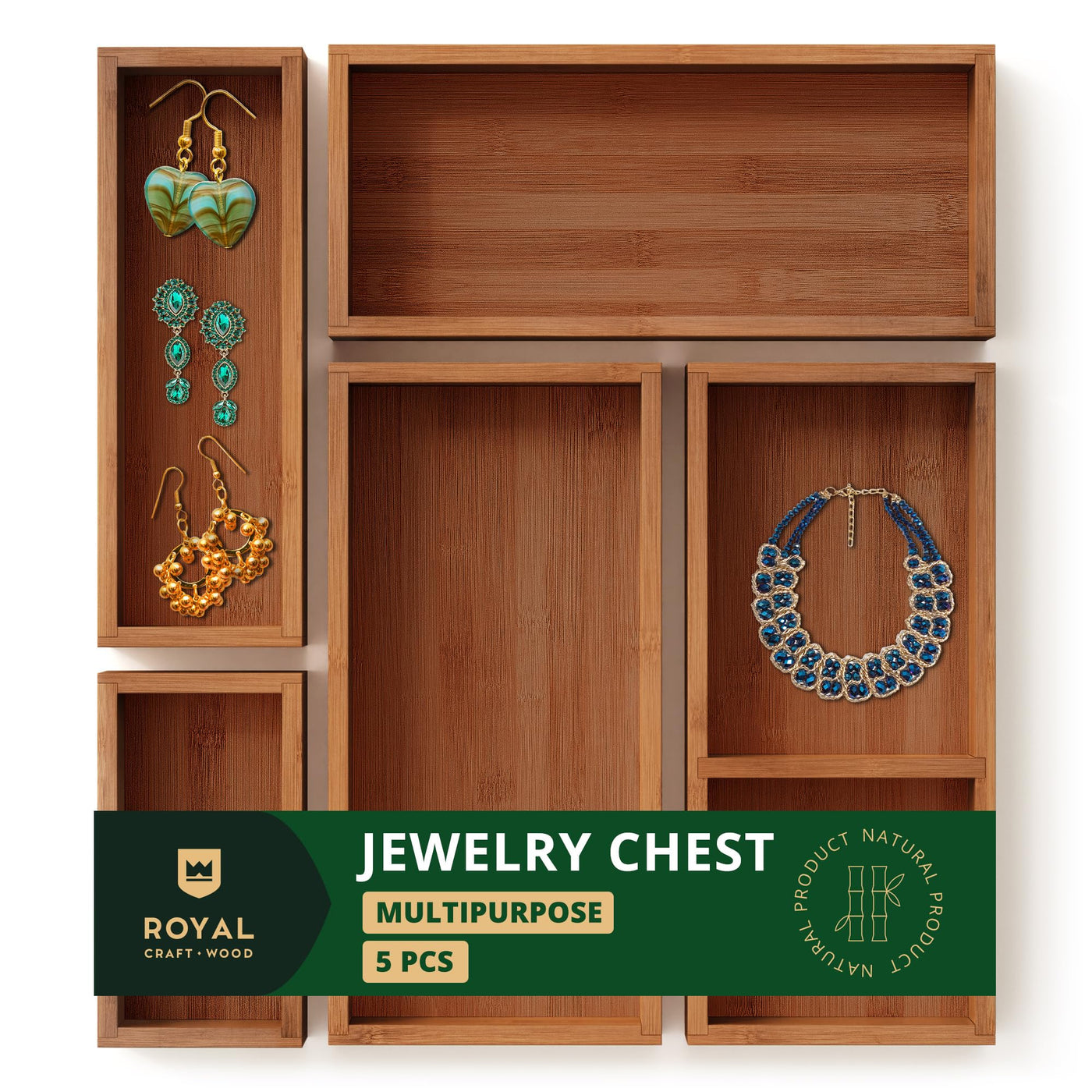 Royal Craft Wood Luxury Bamboo Jewelry Storage Chest - Multi-Use Wooden Treasure Chest Set (5 Boxes) For Jewelry And Home Organi