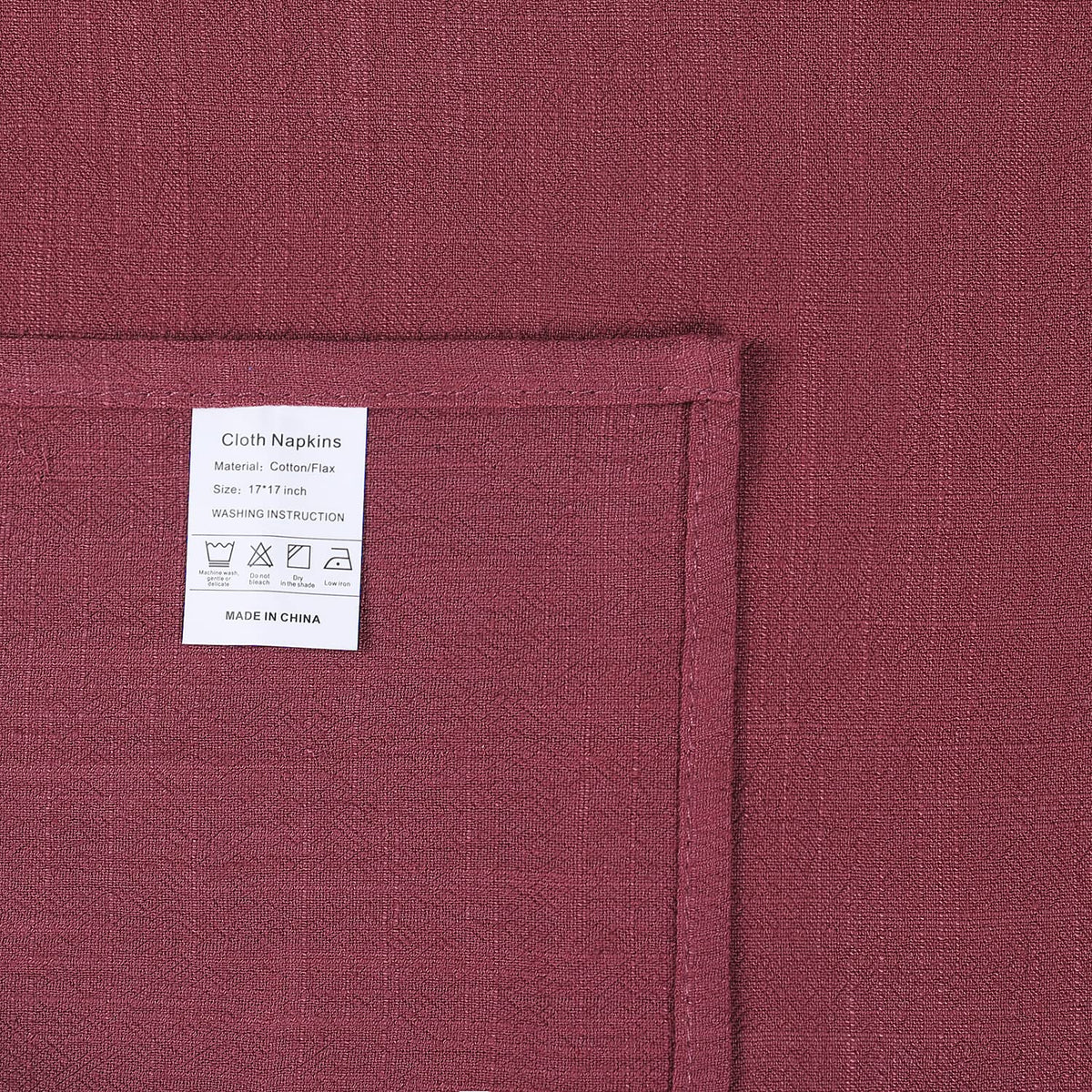 • Q: What materials are used in the Rustic Natural Washable Cotton Linen Napkin Set? A: The napkin set is made from 75% cotton and 25% flax, providing a soft and durable fabric that is comfortable for use.
