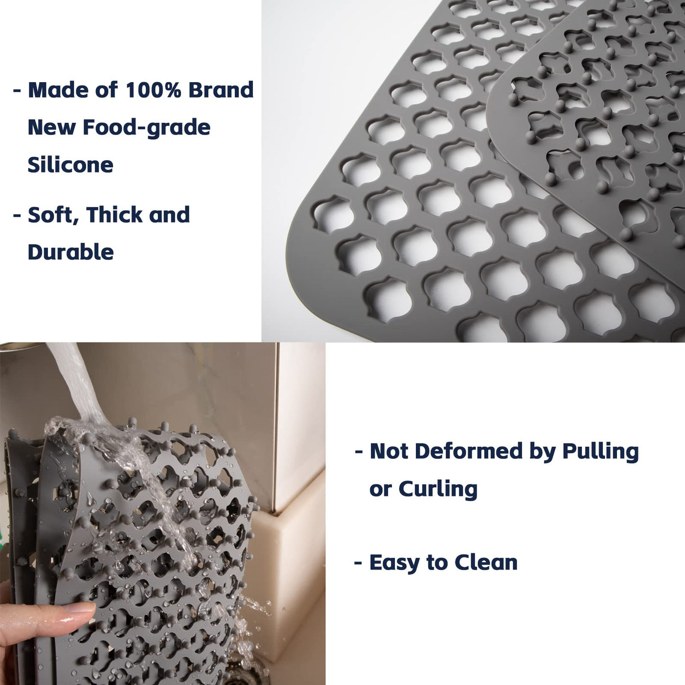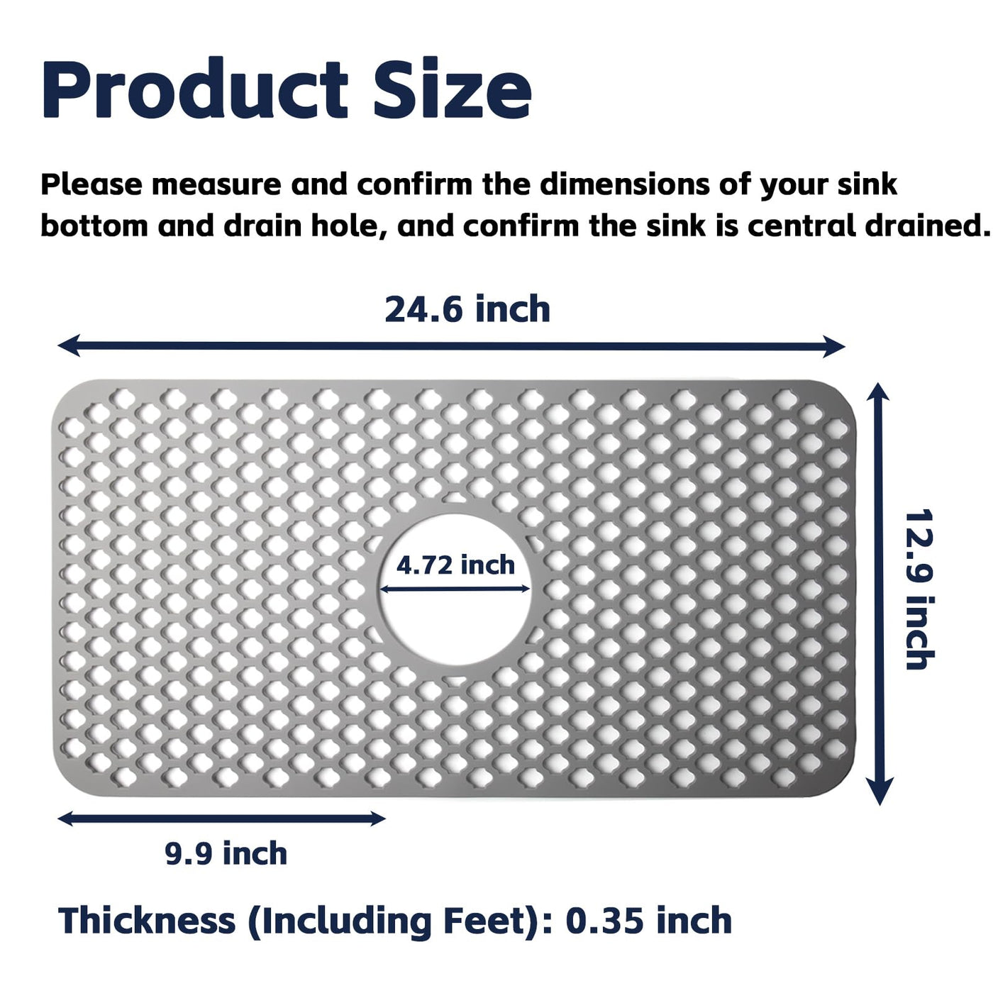 Silicone Sink Mat, 24.6''X 12.9'' Kitchen Sink Protector Grid For Bottom Of Center Drain Sink, Twinnekyr Grey Non-Slip Heat Resi