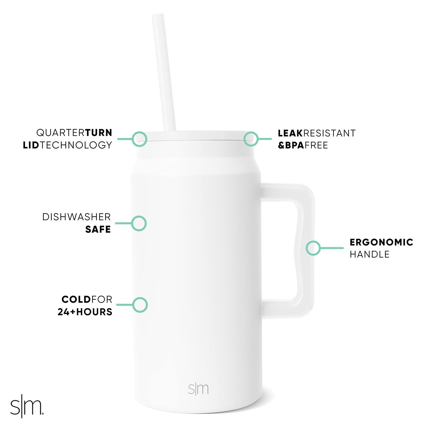 Simple Modern 50 oz Mug Tumbler with Handle and Straw Lid | Reusable Insulated Stainless Steel Large Travel Jug Water Bottle | Gifts for Women Men Him Her | Trek Collection | 50oz | Winter White