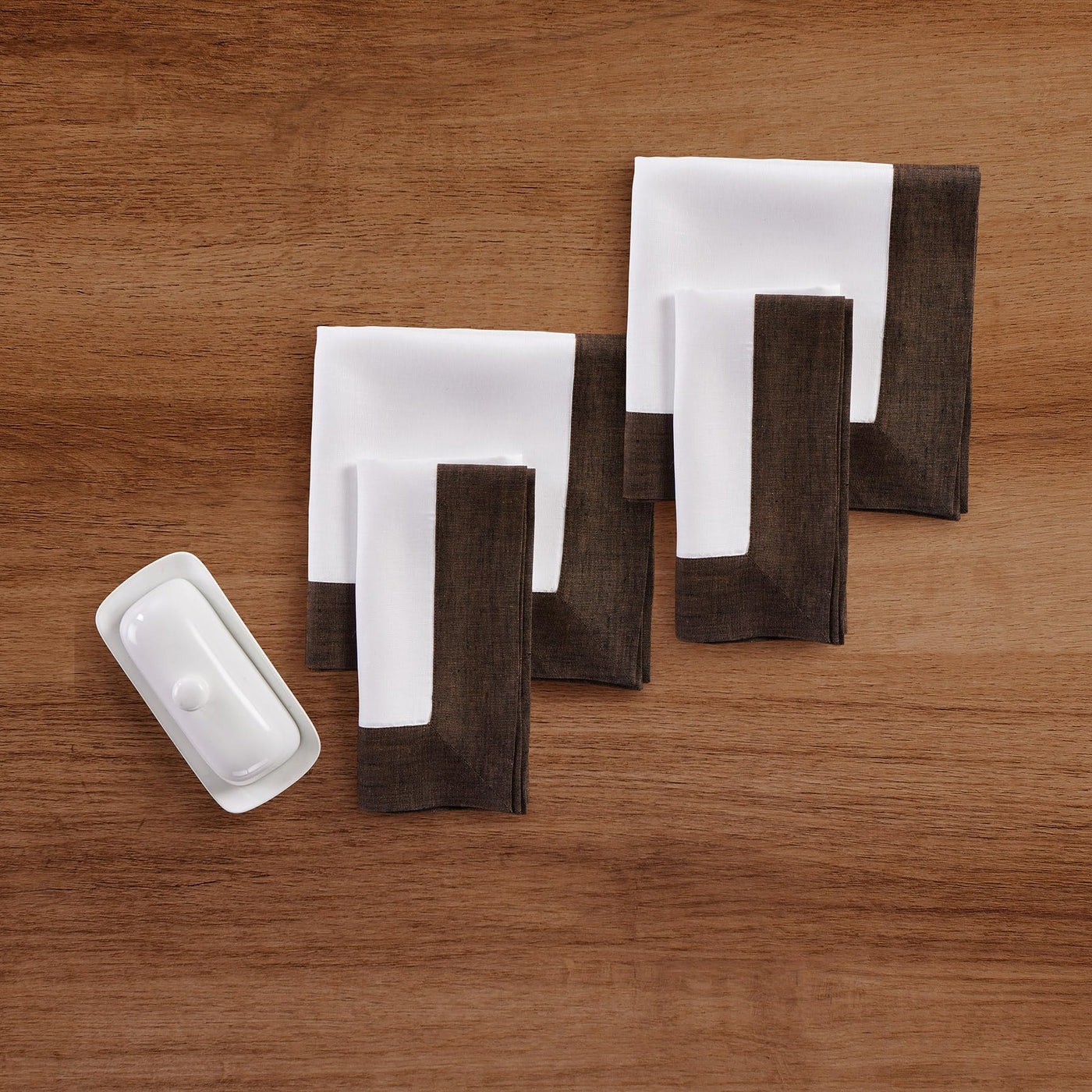 Solino Home Linen Dinner Napkins 20 X 20 Inch - 100% Pure Linen Chambray Brown And White Cloth Napkins Set Of 4 - Contempo, Hand