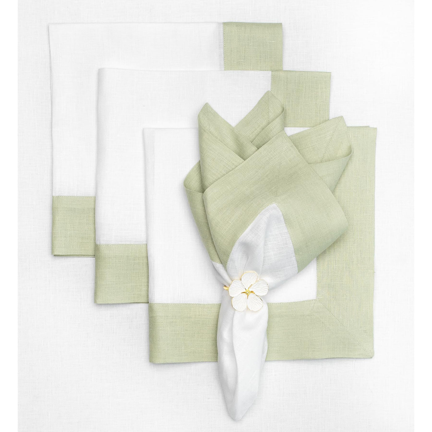 Solino Home Linen Dinner Napkins 20 X 20 Inch - 100% Pure Linen Sage Green And White Cloth Napkins Set Of 4 For Spring, Easter -