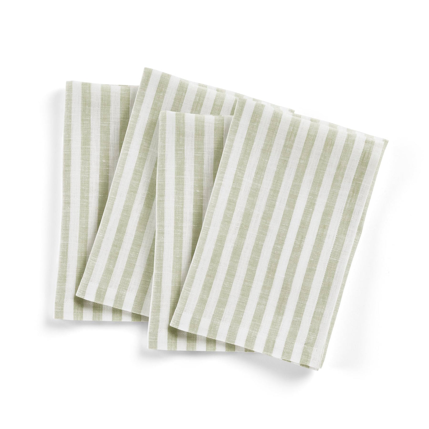 Solino Home Stripe Linen Dinner Napkins 20 X 20 Inch - 100% Pure Linen Sage And White Cloth Napkins Set Of 4 - Amalfi Stripe, Ha
