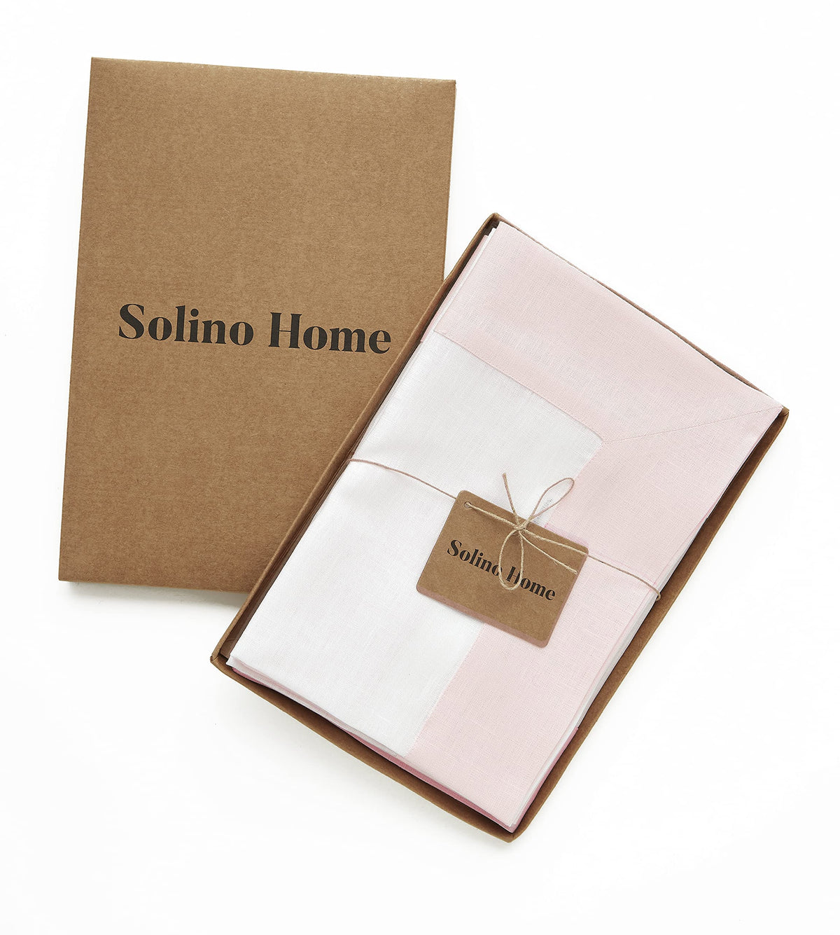 Solino Home Summer Linen Dinner Napkins 20 x 20 Inch - 100% Pure Linen Fabric Napkins Blush Pink and White - Set of 4 Napkins for Spring Mother Day Dining - Contempo Handcrafted from European Flax