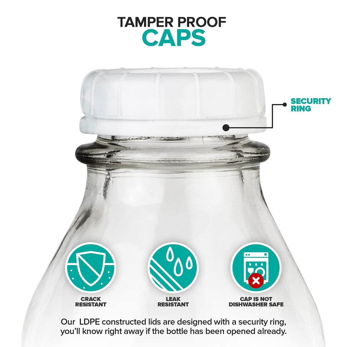 - Q: Are the glass milk bottles dishwasher safe? A: Yes, the glass milk bottles are dishwasher safe. However, the white caps are not recommended for the dishwasher.