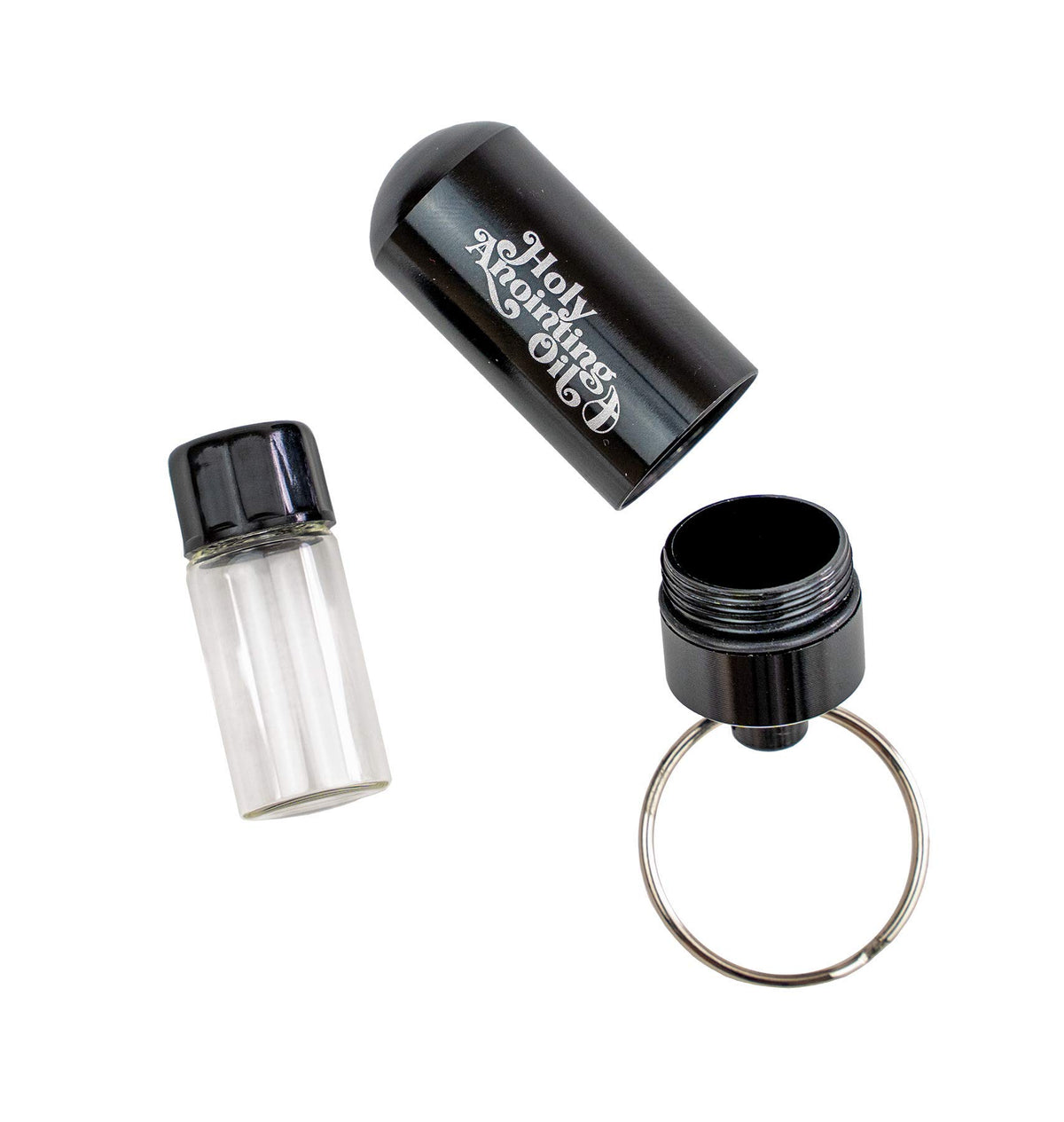 - Q: What is the capacity of the Black Metal Anointing Oil Keychain? A: The keychain has a capacity of 2 milliliters, which is suitable for carrying small amounts of anointing oils or holy water.
