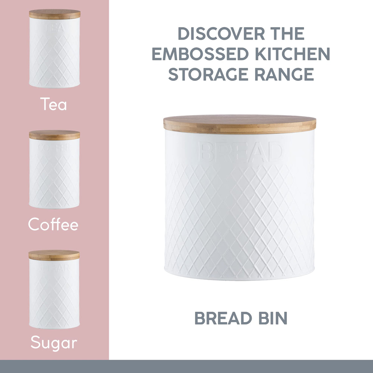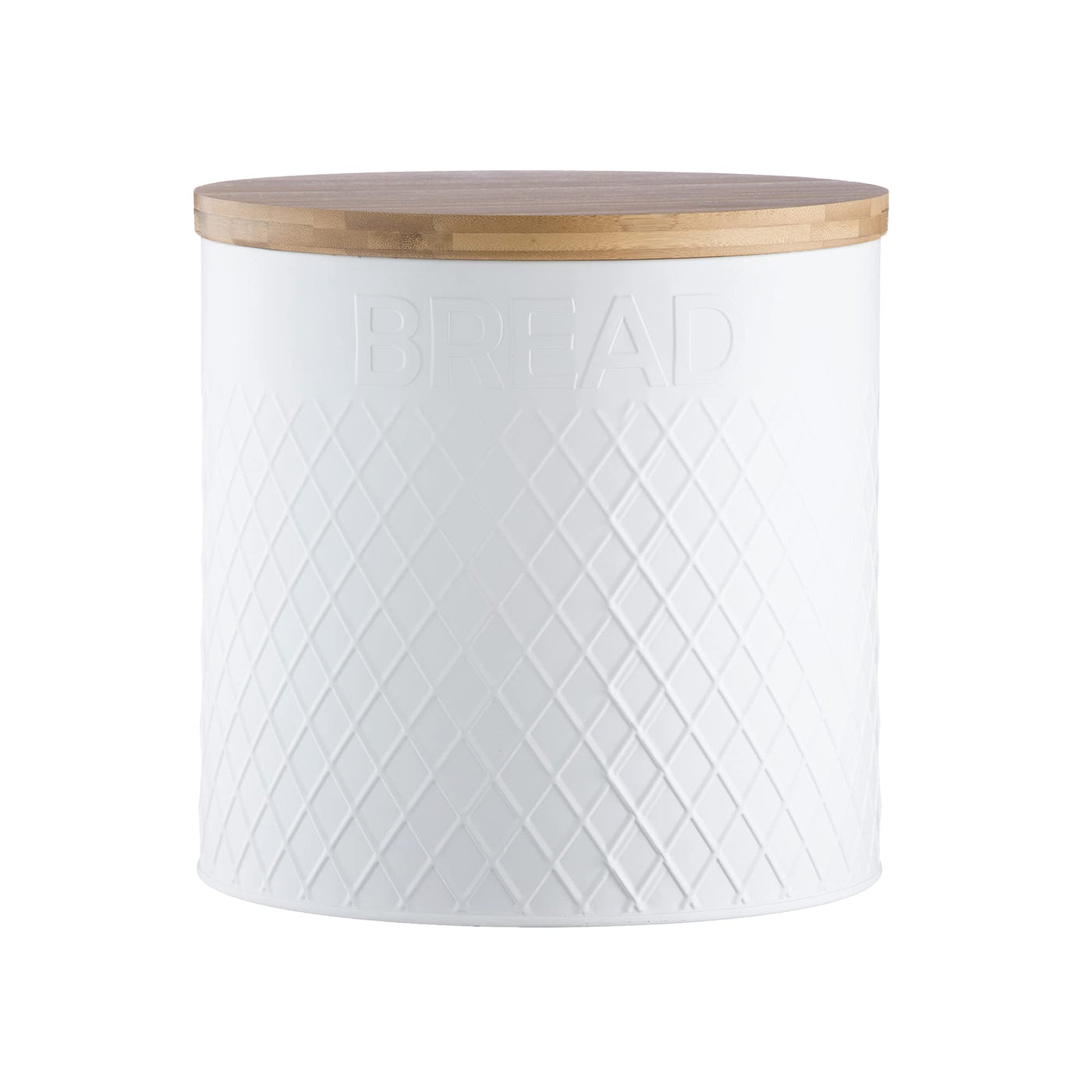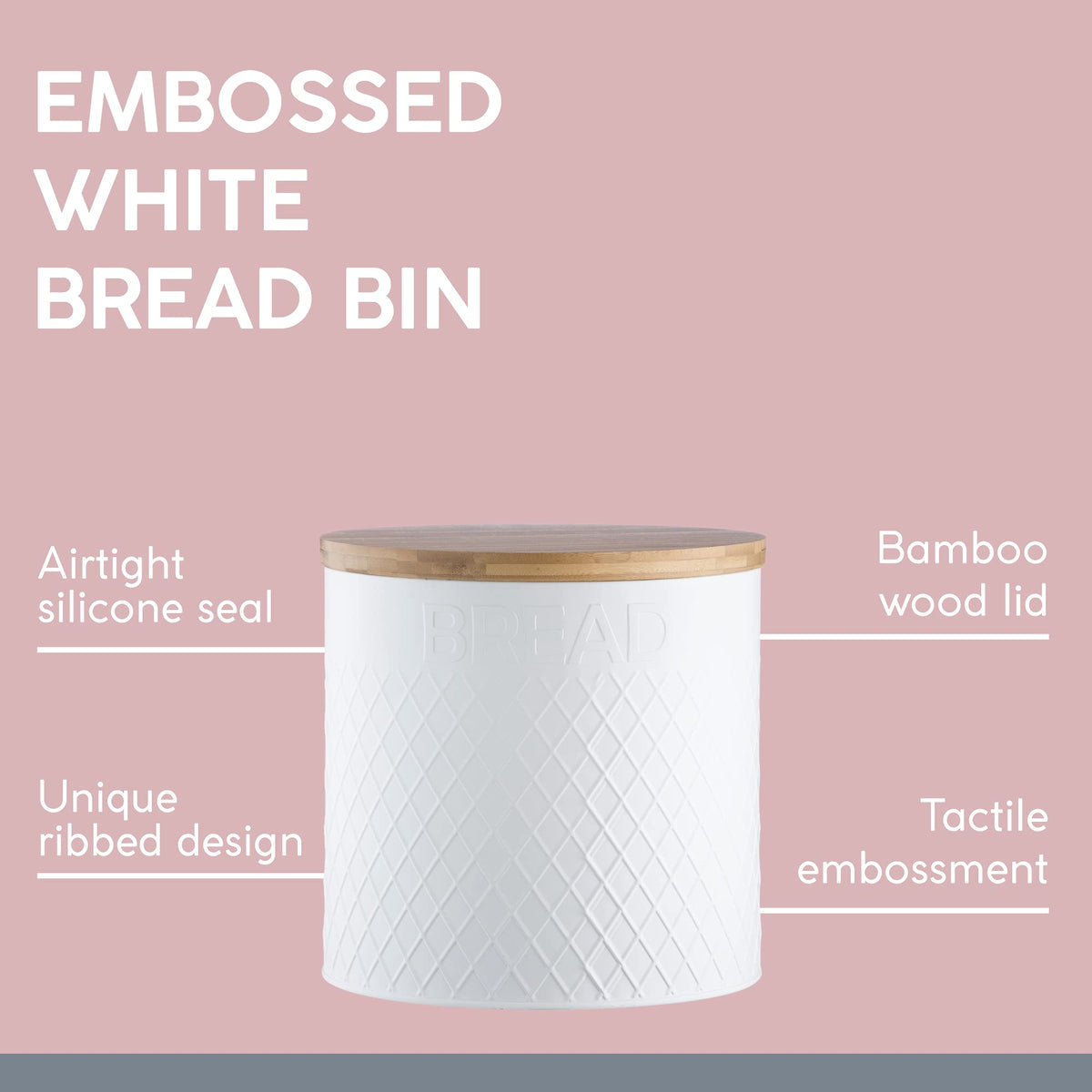 Typhoon Living Embossed Round, Stainless-Steel, White Bread Bin, 25 X 25 X 25 Cm