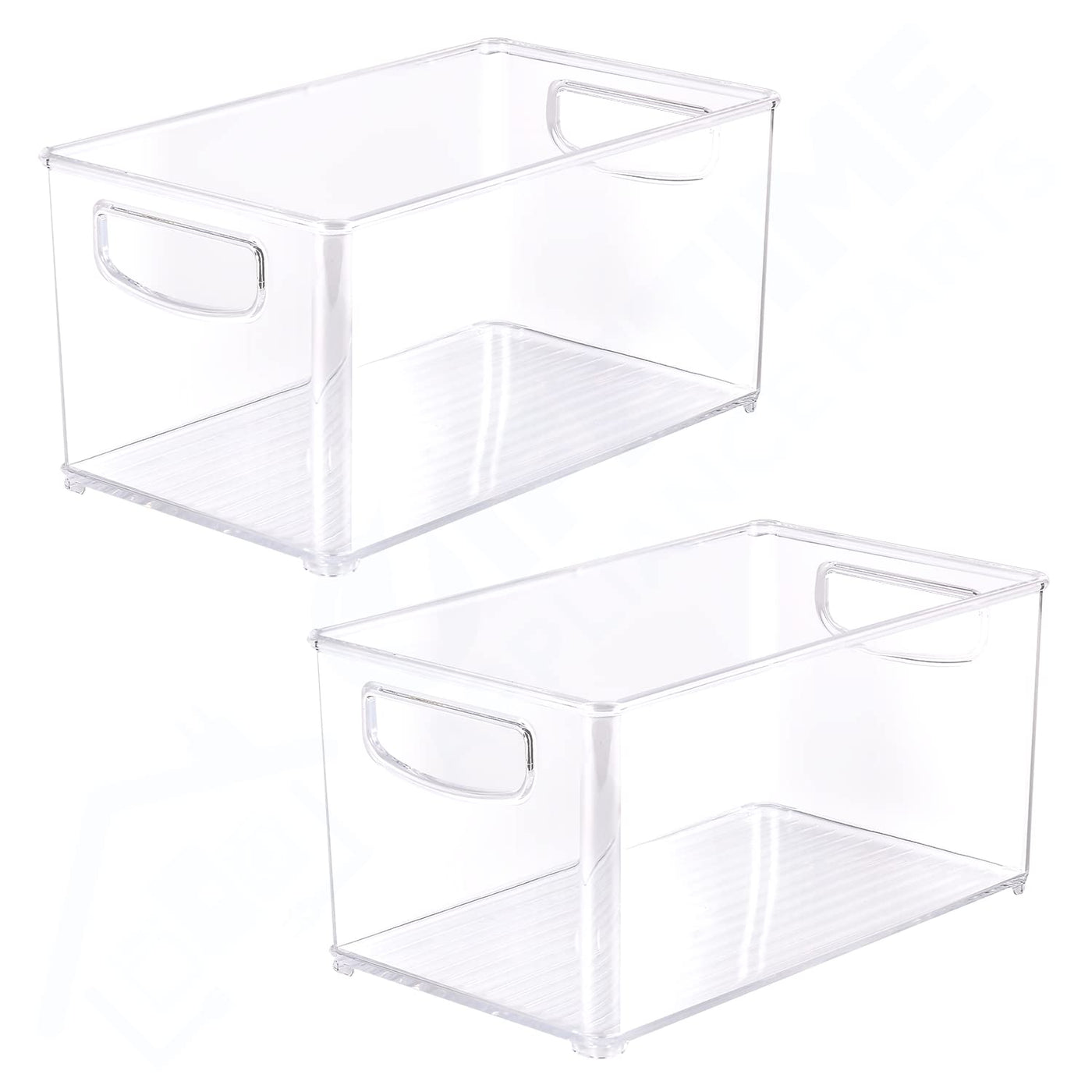 Upgraded 2 X Clear Organizer Storage Bin With Handle Compatible With Kitchen I Best Compatible With Refrigerators, Cabinets & Fo