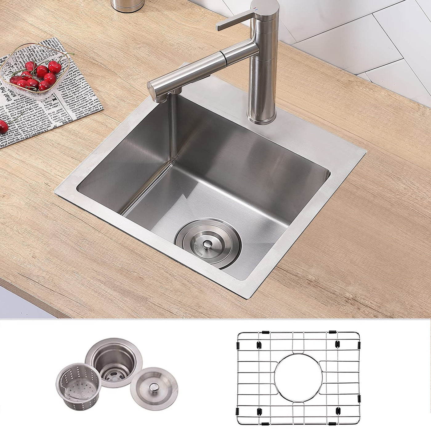 Vccucine Drop In Bar Sink, 15 X 15 Inch Topmount Rv Small Kitchen Sink, Handmade Stainless Steel Wet Bar Sink, Outdoor Single Bo