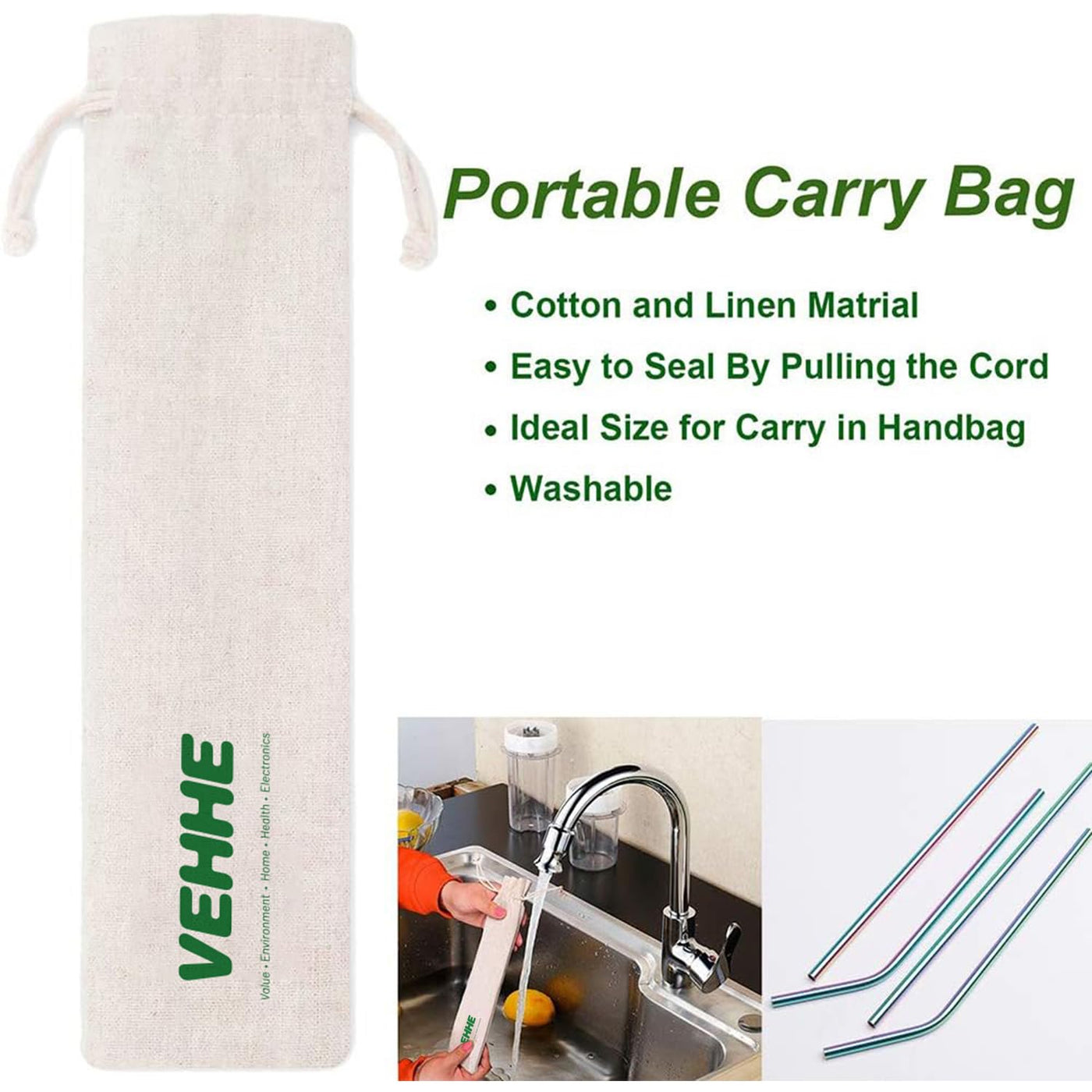 • Q: Do the straws come with a carrying case? A: Yes, the straws include a portable bag made from cotton and linen material for easy carrying.