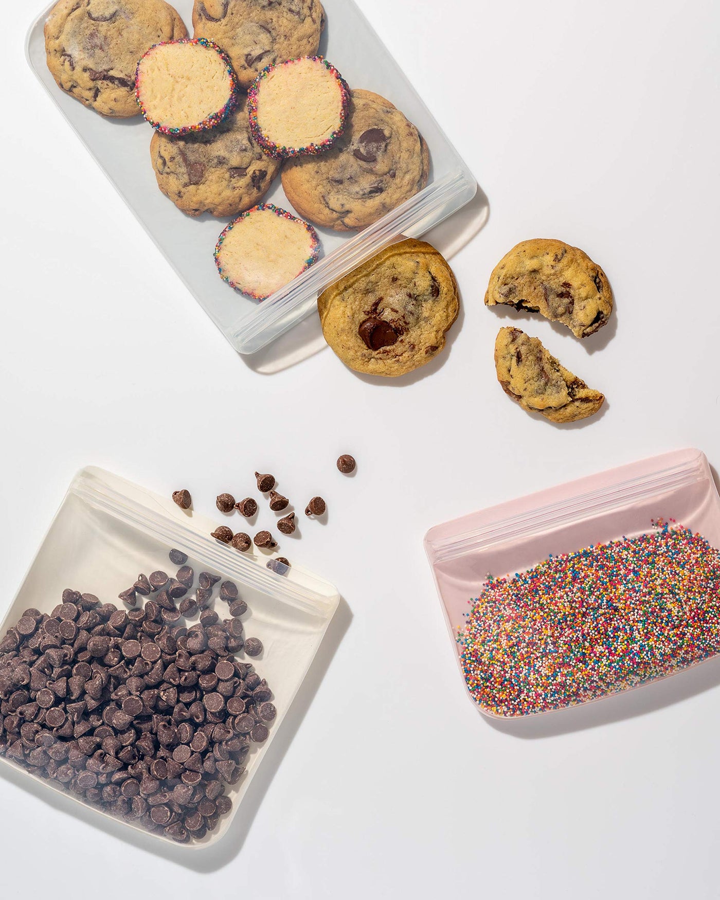 - Q: What are the dimensions of the 10 oz storage bag? A: The 10 oz storage bag is perfectly sized for snacks and small food items, making it ideal for items like blueberries, pretzel sticks, and half an onion.