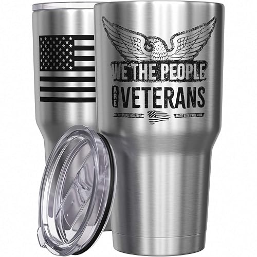 - Q: What design features does the tumbler have? A: The tumbler features a patriotic design with the We The People Are Veterans print on one side and a proud USA flag on the other.