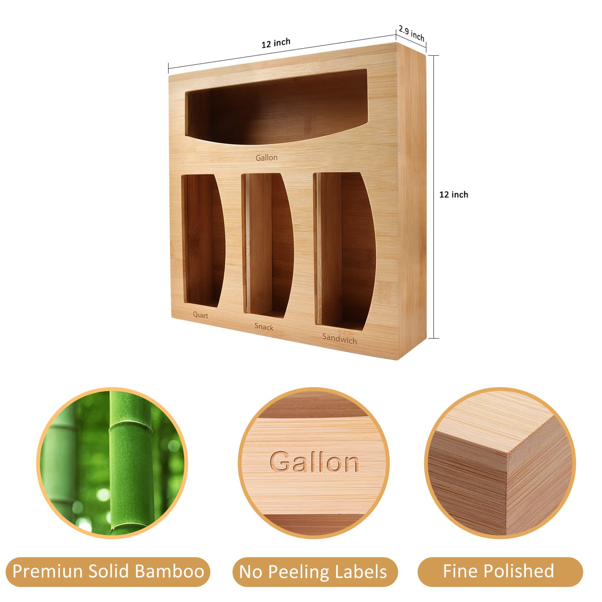 Ziplock Bag Organizer For Kitchen Plastic Bag Storage, Premium Bamboo Organizer, Food Storage Bag Holders For Gallon, Quart, San