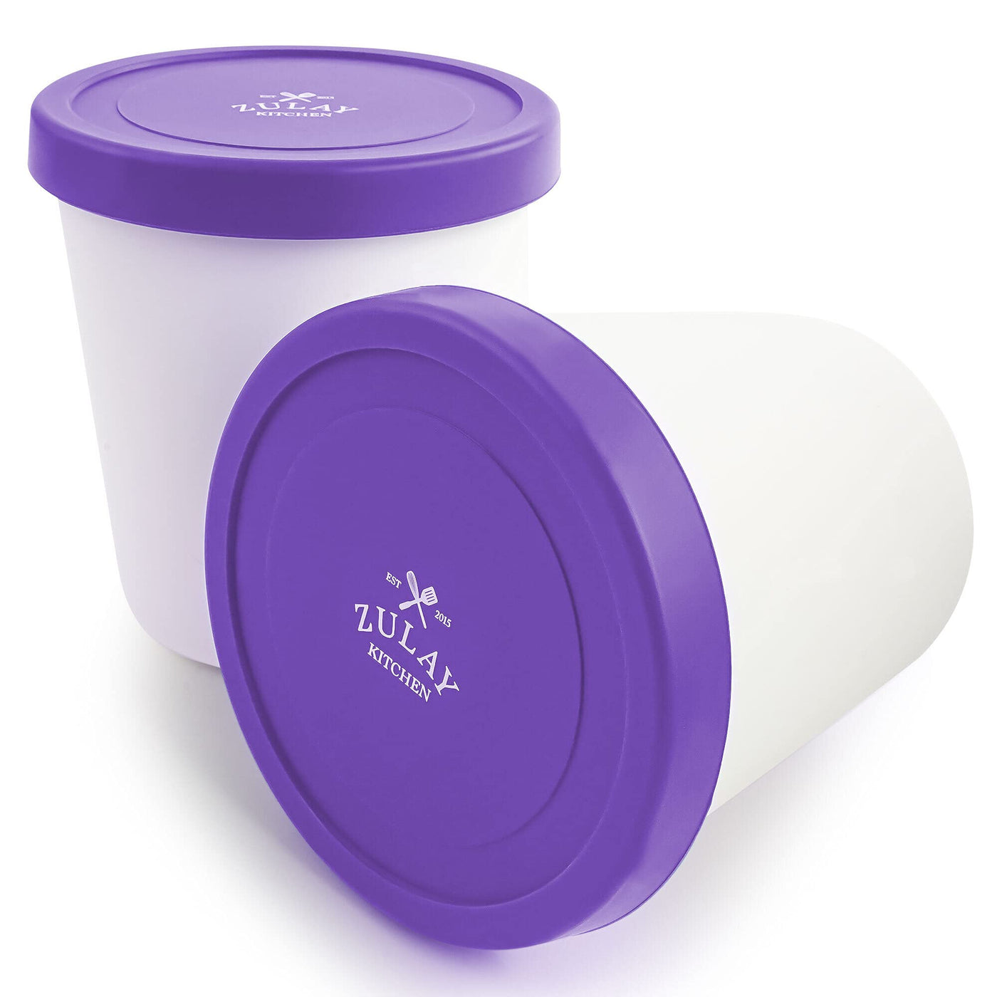 Zulay [2 Pack - 1 Quart Each] Large Ice Cream Containers For Homemade Ice Cream - Reusable Ice Cream Container Set With Lids - I