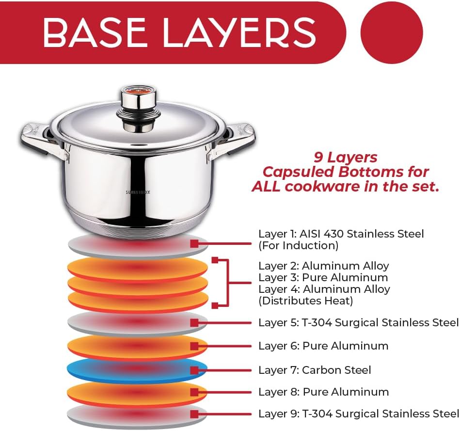 18-Piece Stainless Steel Cookware Set, Includes Induction Compatible Fry Pots, Pans, Saucepan, Casserole