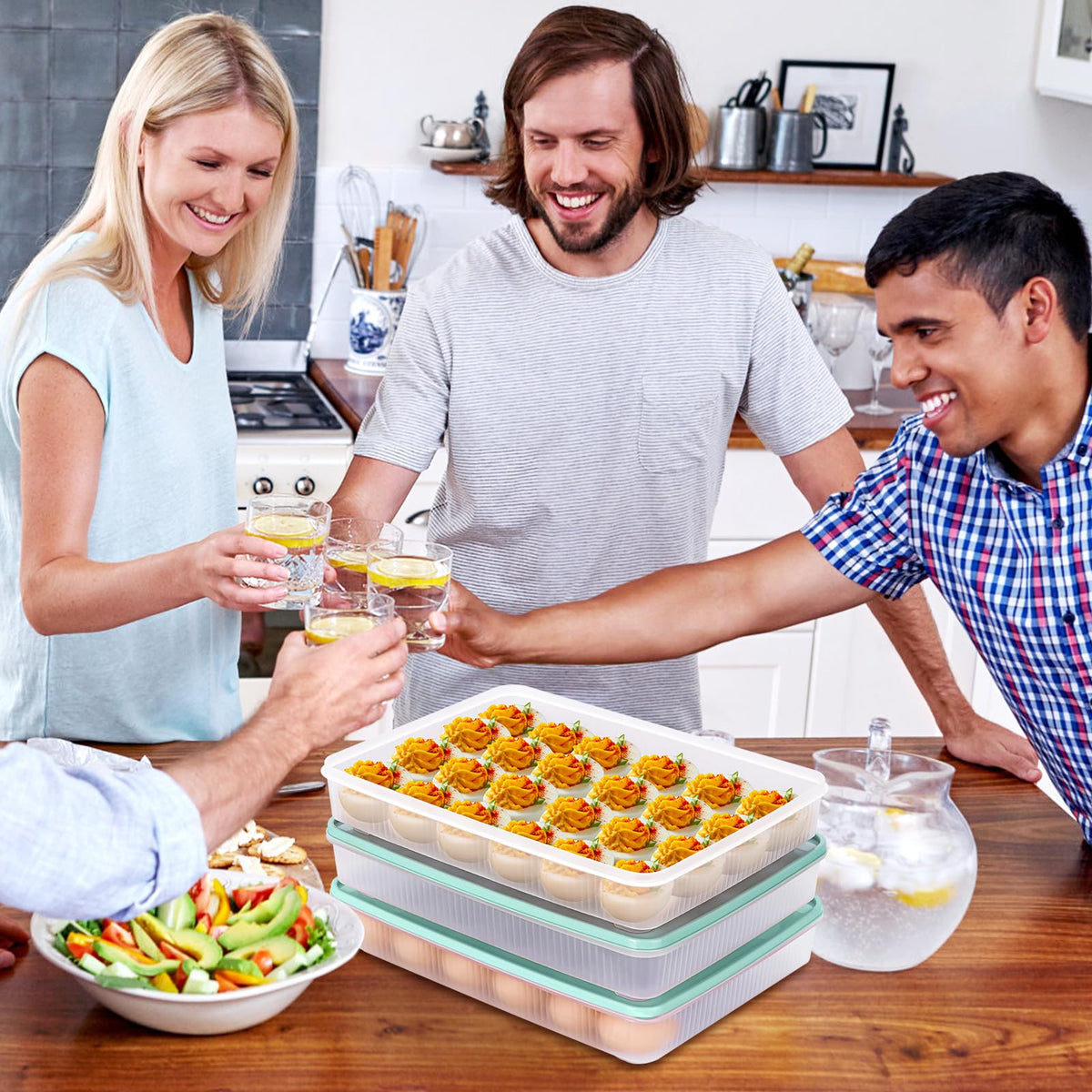 3 Pack Deviled Egg Containers with Lid and 8 Pcs Deviled Egg Injector Piping Tool, Egg Organizer for Refrigerator, Fridge Stacka