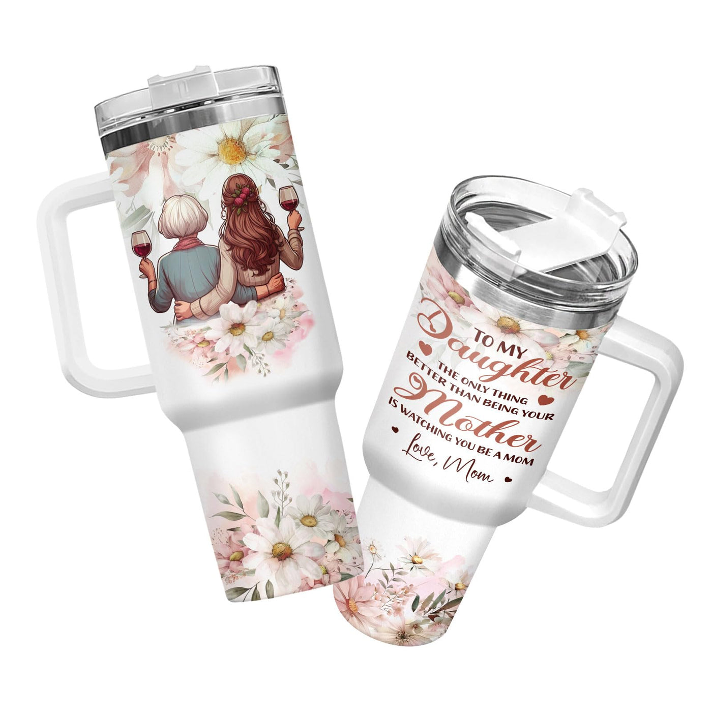 34HD Mother and Daughter Tumbler with Handle & Straw, 40oz Stainless Steel Vacuum Insulated Expecting Mom Mug with Lid, Birthday