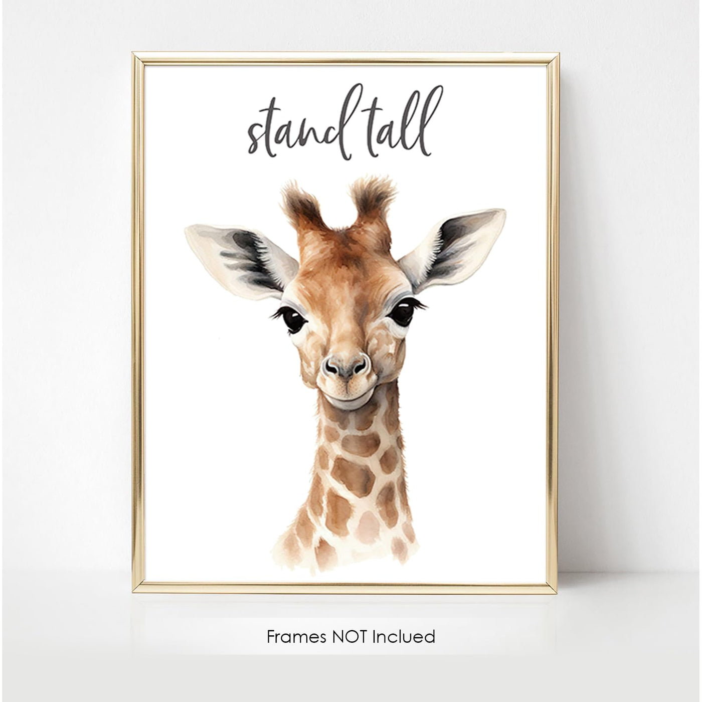6 Pcs Cartoon Animals Wall Art Nursery Decor Cute Giraffe Leopard Zebra Deer Elephant Inspirational Wall Decor Unframed Posters