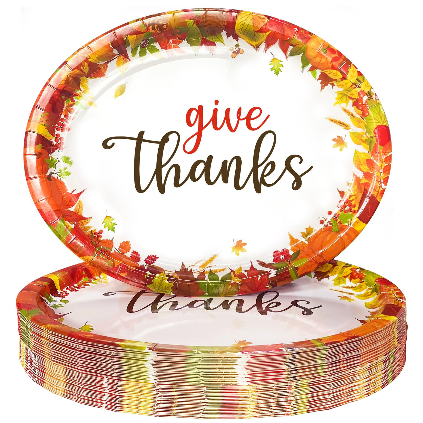 AinDen Thanksgiving Paper Plates 50 Pack, 10.2 x 12.6 Inch Heavy Duty Disposable Plates for Thanksgiving Dinner, Fall Harvest Pa