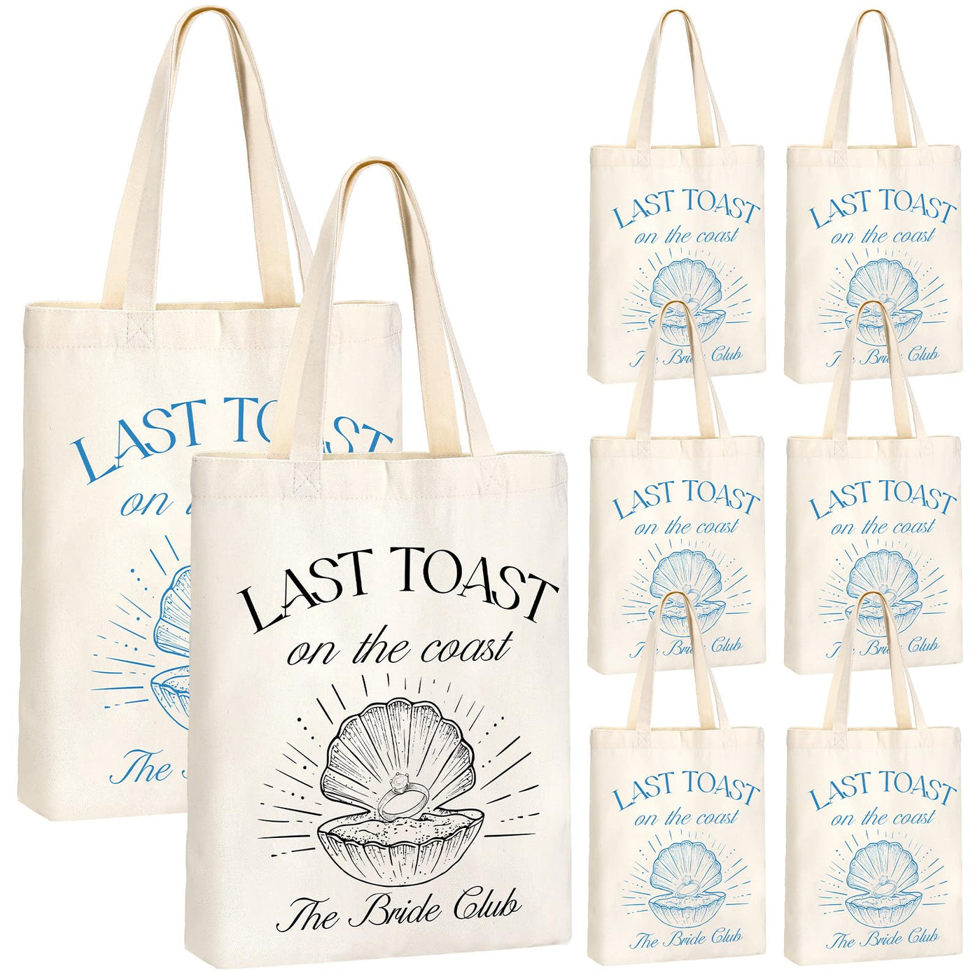 Aliceset 8 Pieces Bridesmaid Tote Bags Reusable Canvas for Bachelorette Bridesmaid Gift Bags Bridal Shower Tote(Black,Blue,Last