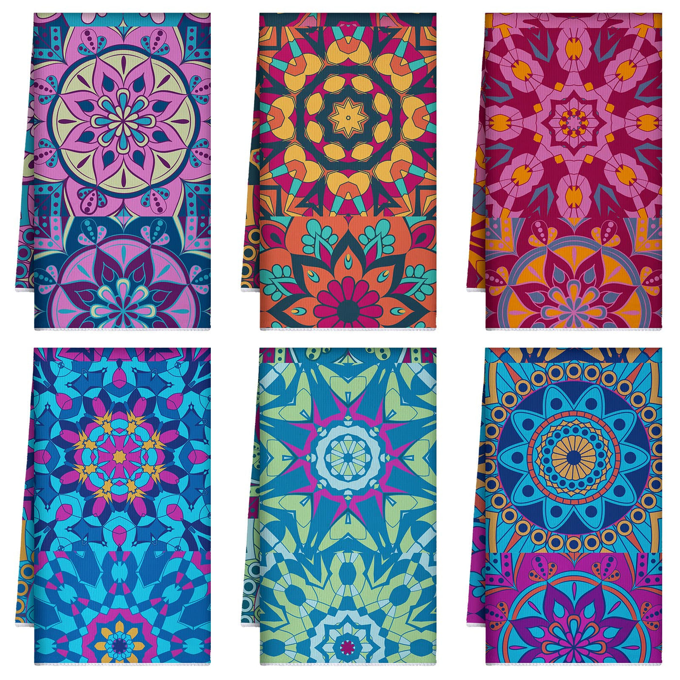 Boyiee Set of 6 Mandala Kitchen Towels Absorbent Boho Dish Towels 24 x 16 Inches Multicolor Hand Dishcloths Mandala Lover Gifts