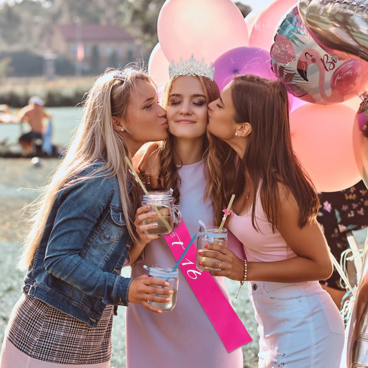 • Q: What items are included in the Casoty 16th Birthday Sash and Tiara set? A: The set includes one birthday sash, one tiara, and one pearl pin.