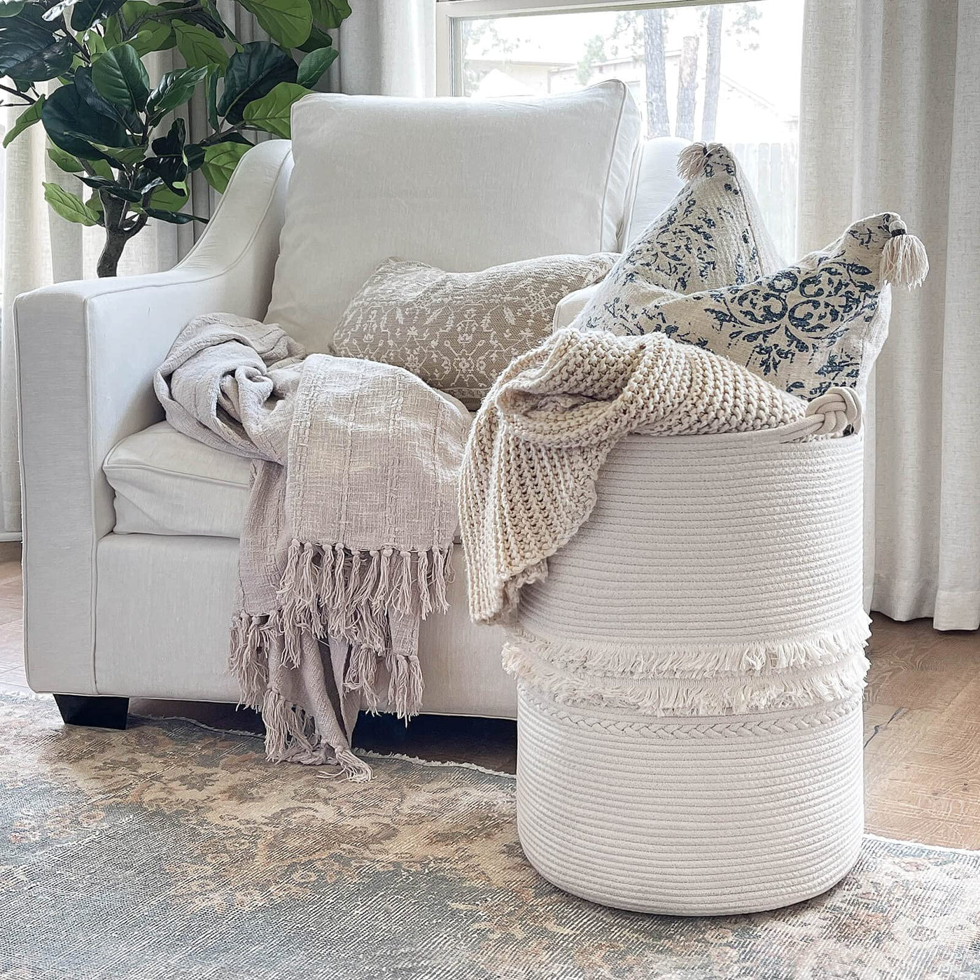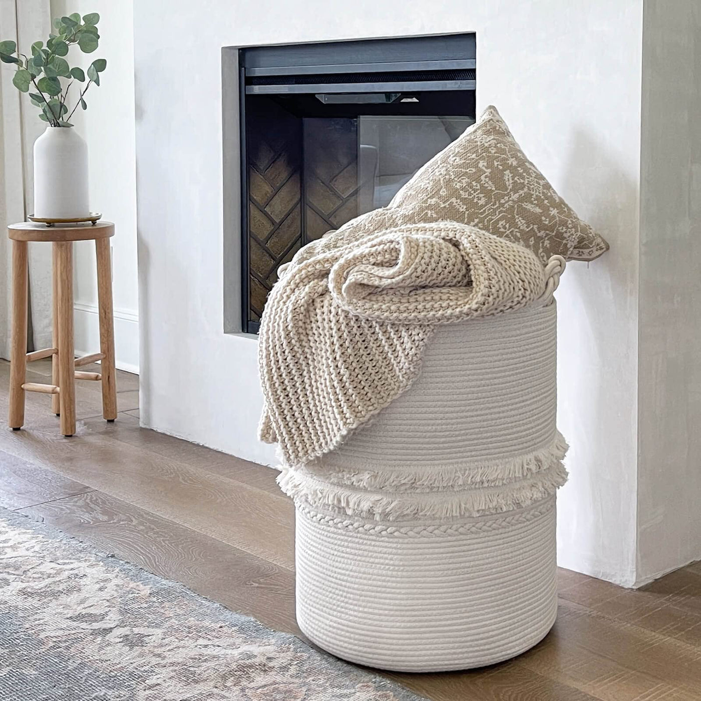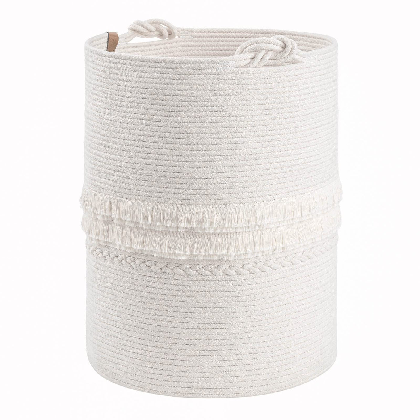 Cherrynow Baby Laundry Hamper For Nursery, Tall Laundry Basket For Laundry Room, White Woven Storage Basket For Clothes, Toys, T