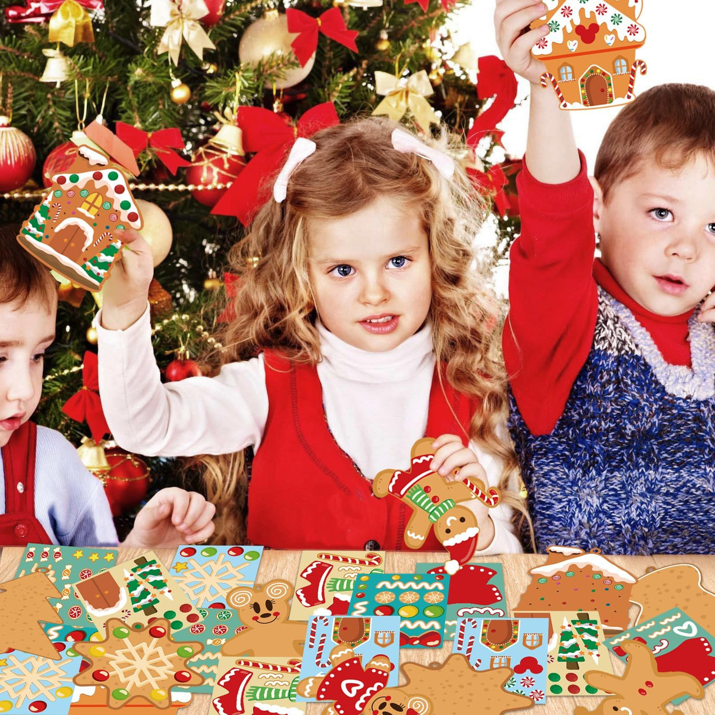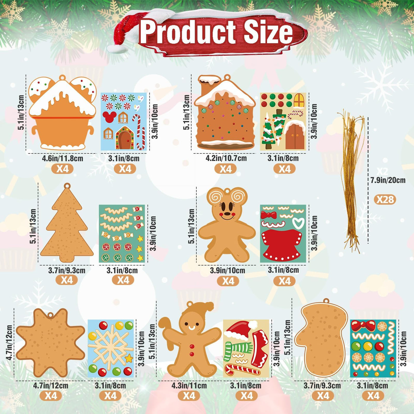 Christmas Ornaments Art and Crafts for Kids - 28pcs DIY Christmas Cutouts with Gingerbread Cookies Man House Christmas Stickers